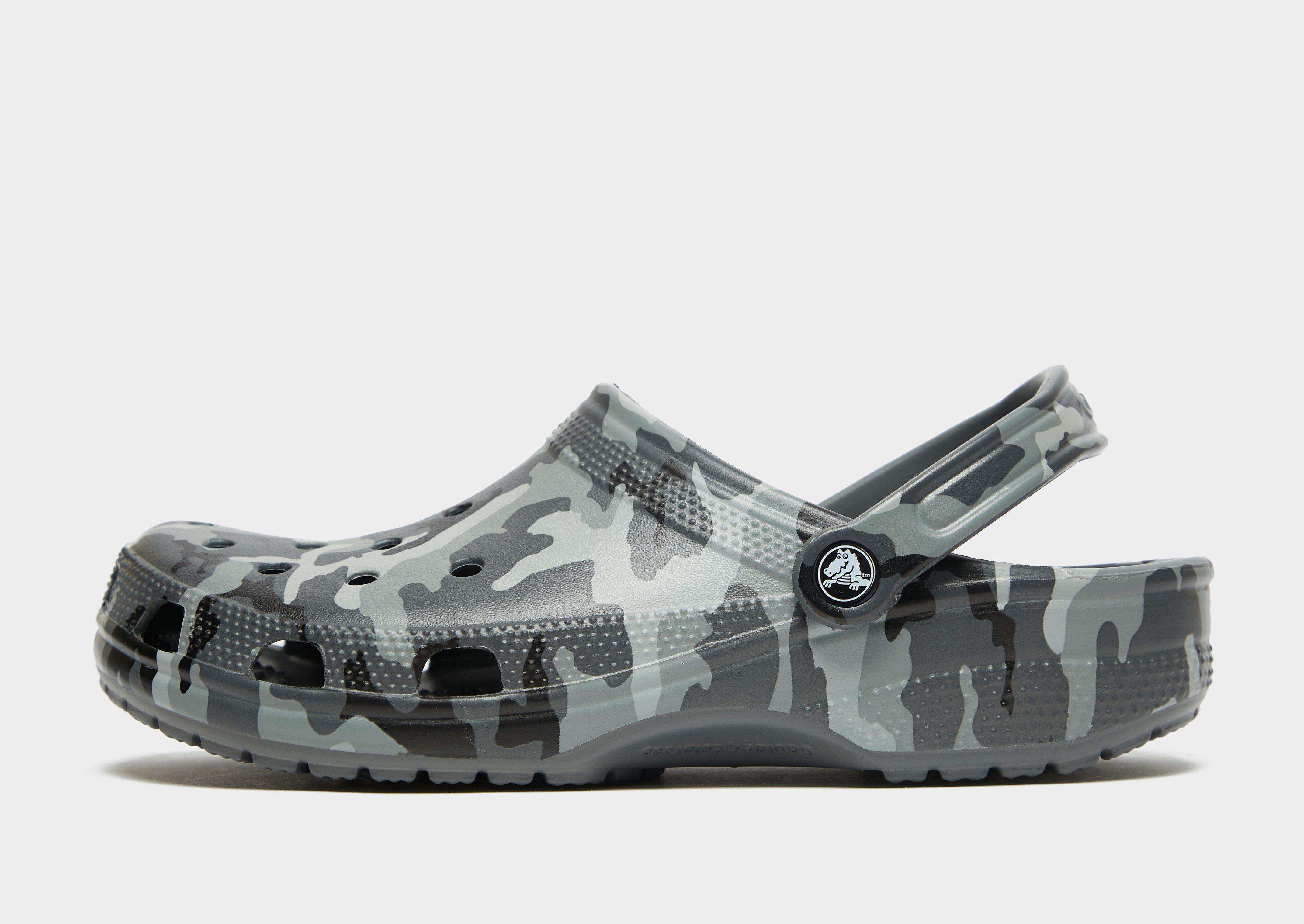 Upgrade your summer rotation with these men's Classic Clogs from Crocs. In a Camo Slate colourway, they're made with a moulded synthetic upper with perforated holes across the top for breathable wear. With a contoured footbed and adjustable heel strap for a secure, comfy fit these sandals are finished with grippy tread and the Crocs logo to the strap.
