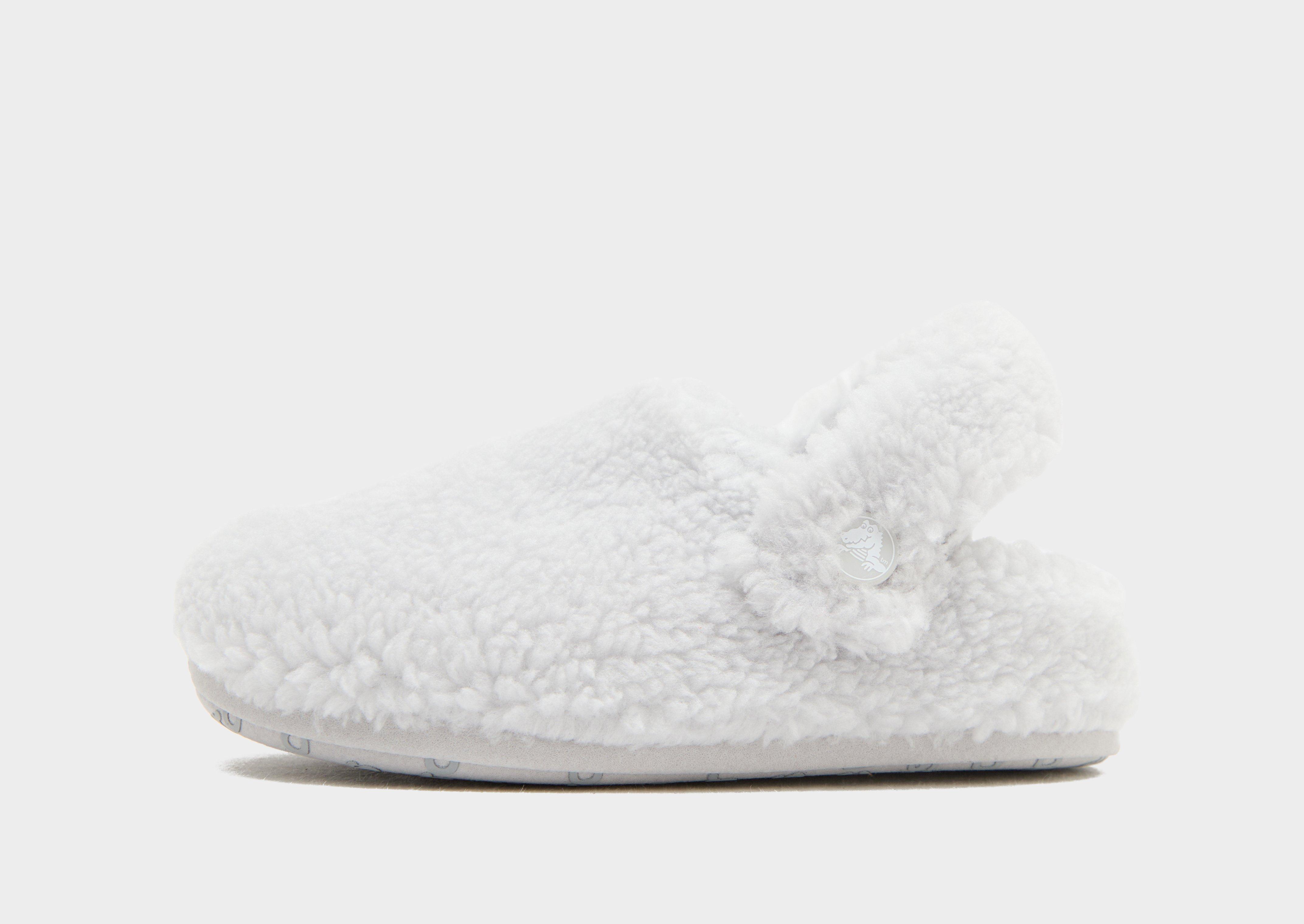 Crocs has got their cosy days covered. These children's Classic Cozzzy Slippers land in Atmosphere grey. Super-soft faux fur keeps little feet toasy, with a snug lining and pivoting heel strap. The soft sole's finished with grippy Crocs branding. Please note: Crocs fit wide. If you have narrow feet, we recommend that you size down. Crocs come with the US size embossed to the sole.