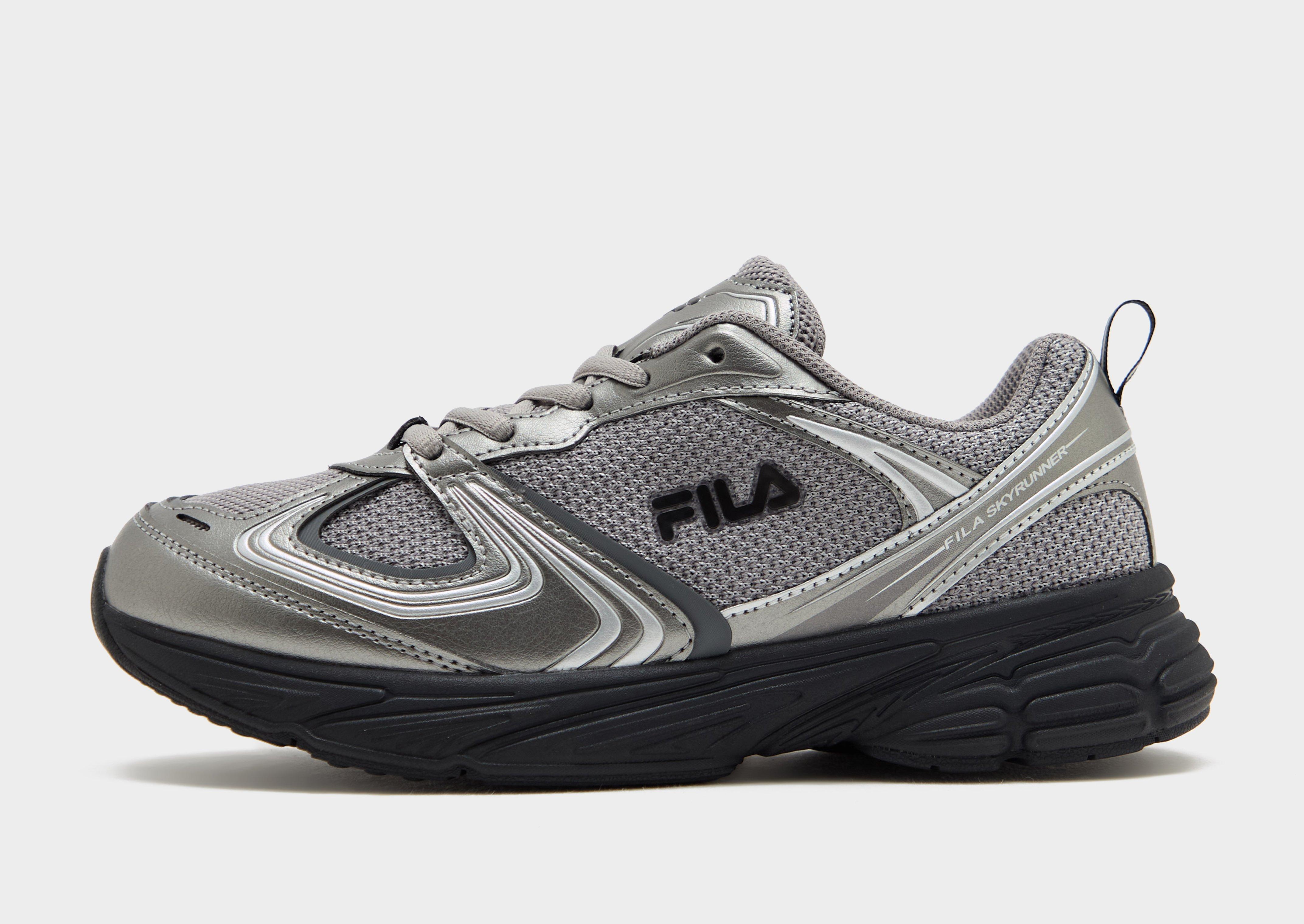 Refresh your rotation. These juniors' Skyrunner trainers from Fila are here to switch it up. In a JD-exclusive grey and silver finish, they've got a sporty, airy mesh upper. Synthetic overlays bring old-school energy, while a spongy foam midsole keeps you cushioned. With a rubber tread for grip underfoot, these sneakers are finished up with classic Fila branding.