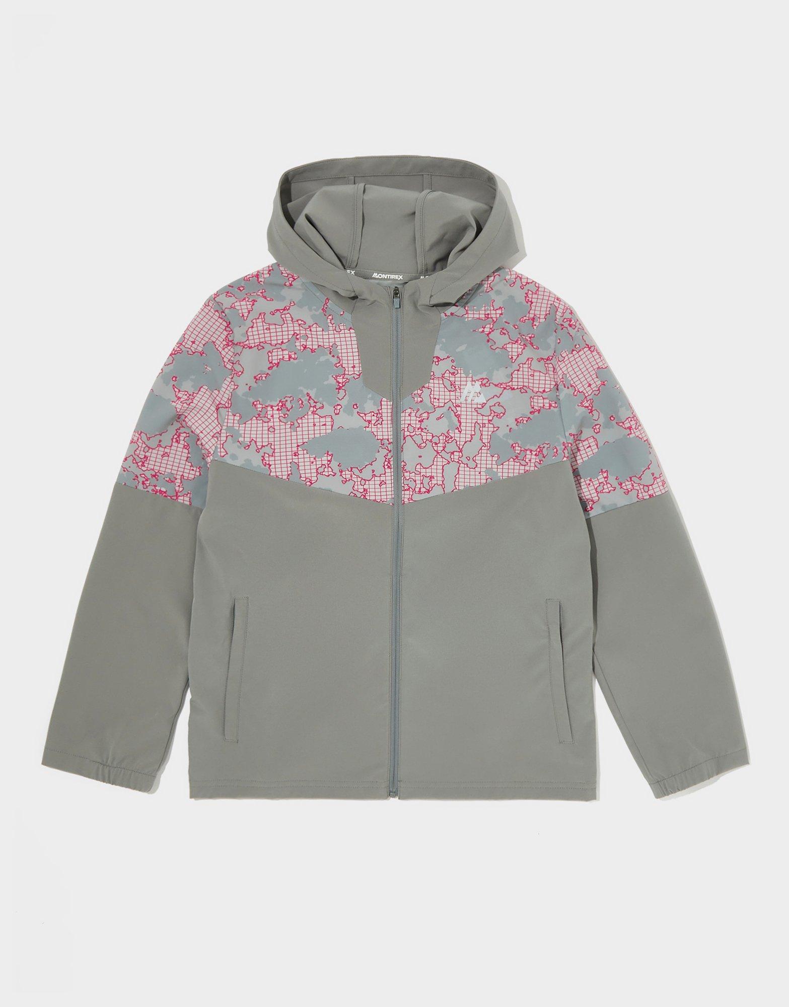 Zip up in a fresh look from Montirex with this juniors' Camo Colour Block Windbreaker. Made from lightweight, water-resistant fabric, this jacket comes in a grey colourway with a camo panel to the chest in pink. It features a full-zip fastening and a fixed hood for custom coverage. With side pockets to keep hold of your essentials, this windbreaker is finished up with signature Montirex branding. Machine washable._