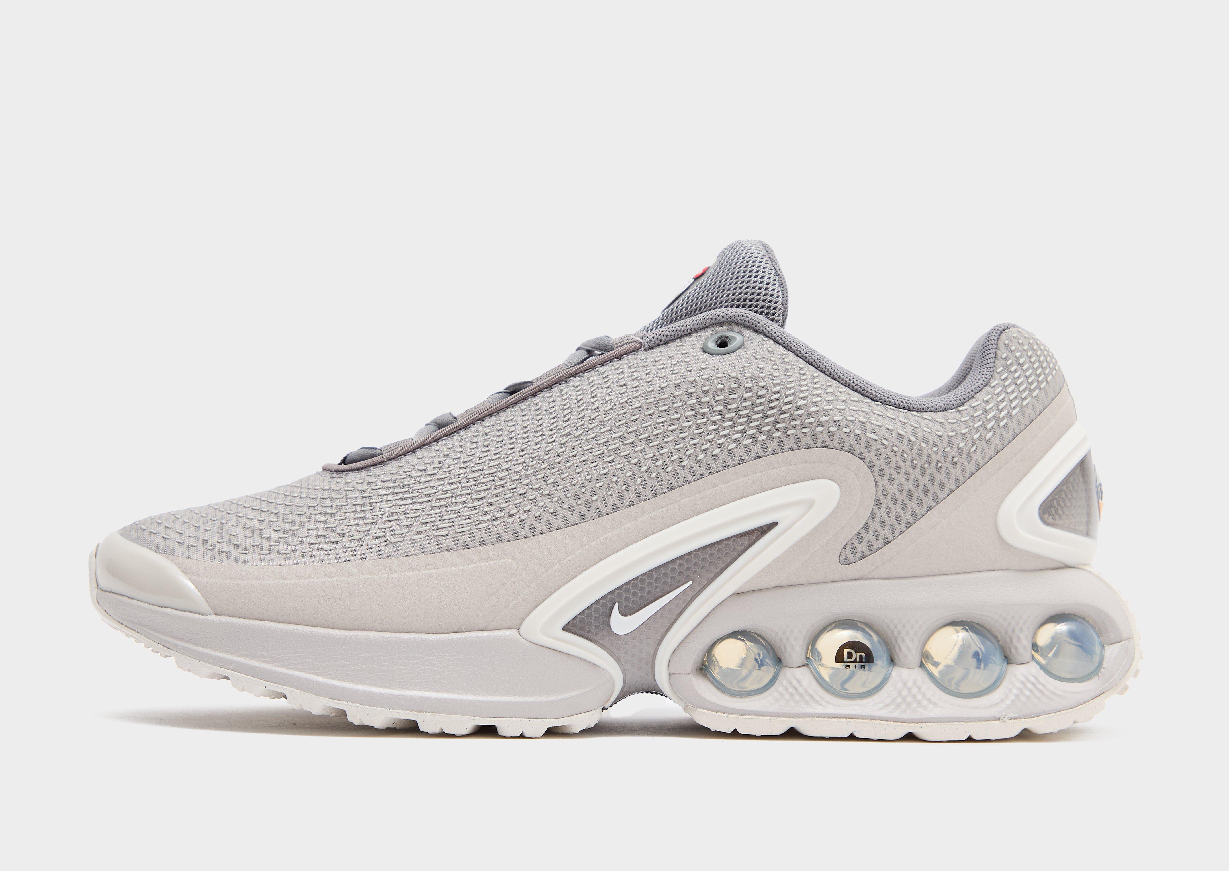 Level up your tread game in the Swoosh with these men's Air Max Dn sneakers from Nike. In a Grey Pewter and White colourway, these sneaks have a breathable mesh upper with a textured haptic print for a speedy look. Underfoot, they sit on a soft foam midsole that works with a Dynamic Air unit system - two sets of dual-pressure tubes that shift air levels as you move - for a super smooth ride. With a durable rubber outsole, they're are finished off with the Air Max Dn logo and the signature Swoosh._