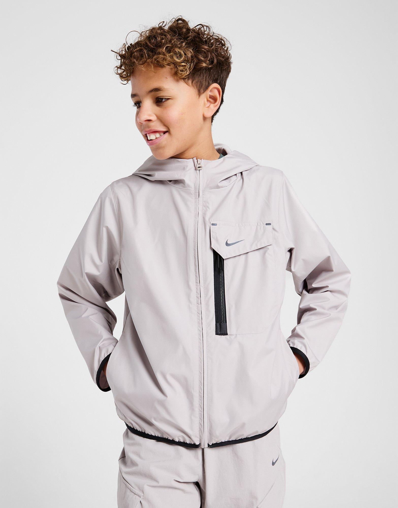 Level up your streetwear with this juniors' City Utility Woven Full Zip Jacket from Nike. In a Cool Grey colourway, this lightweigth coat has a water-repellent finish to the smooth woven outer shell, while the breathable mesh lining keeps you cool. It features elastic tims to the cuffs and hem to shape the fit and a zippered chest pocket to stash your essentials. Finished off with branded neck tape and the signature Swoosh on the chest. Machine washable.