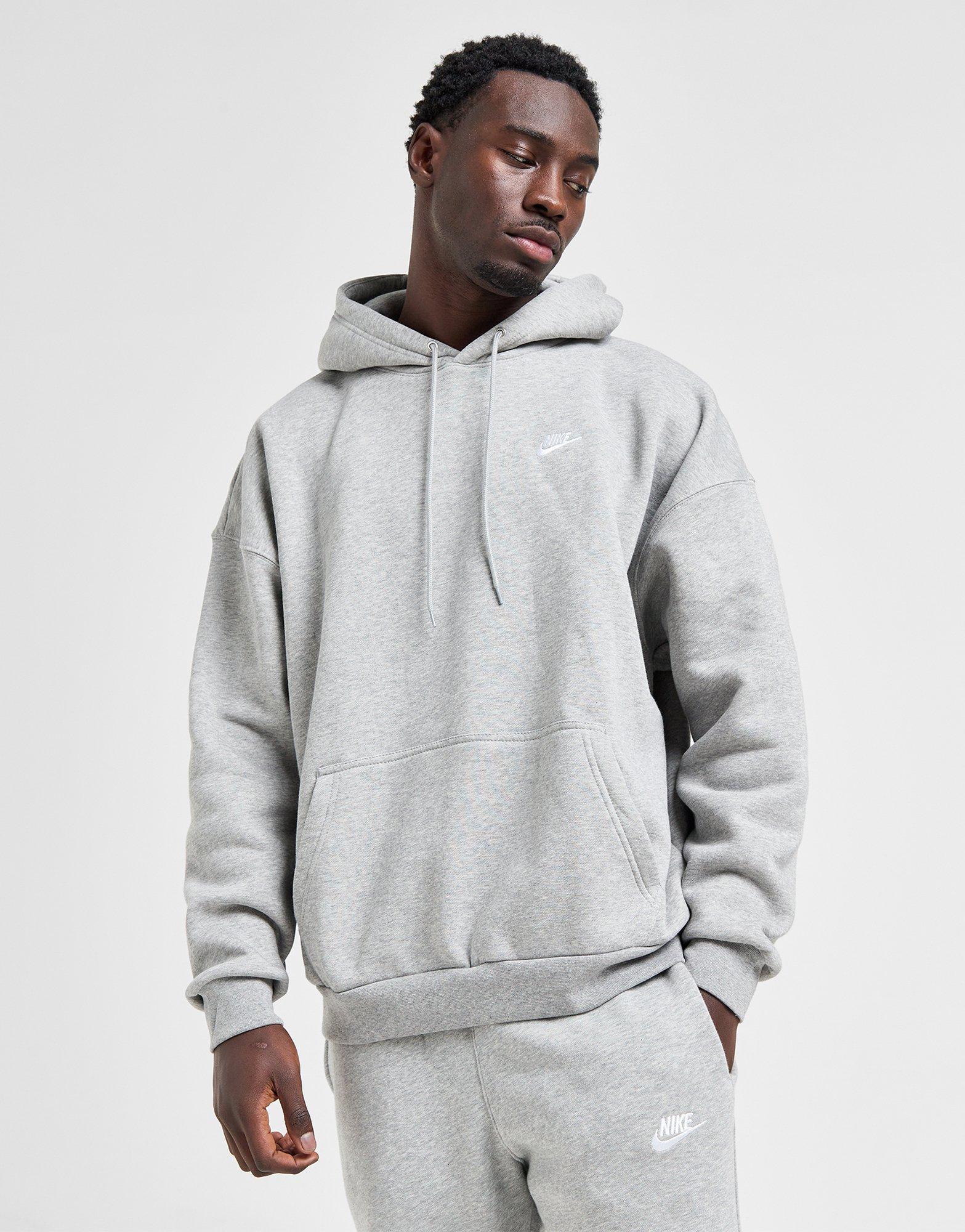Rep the Swoosh with this men's Oversized Hoodie from Nike. In a Dark Grey Heather colourway, this oversized hoodie is cut from a midweight brushed fleece fabric for total comfort. It features a drawcord-adjustable hood for custom coverage, ribbed trims on the hem and cuffs to hold the shape, and a kangaroo pocket for storage. Finished up with an embroidered Futura logo on the chest. Machine washable. | Our model is 6'1" with a 36" chest and wears a size M.