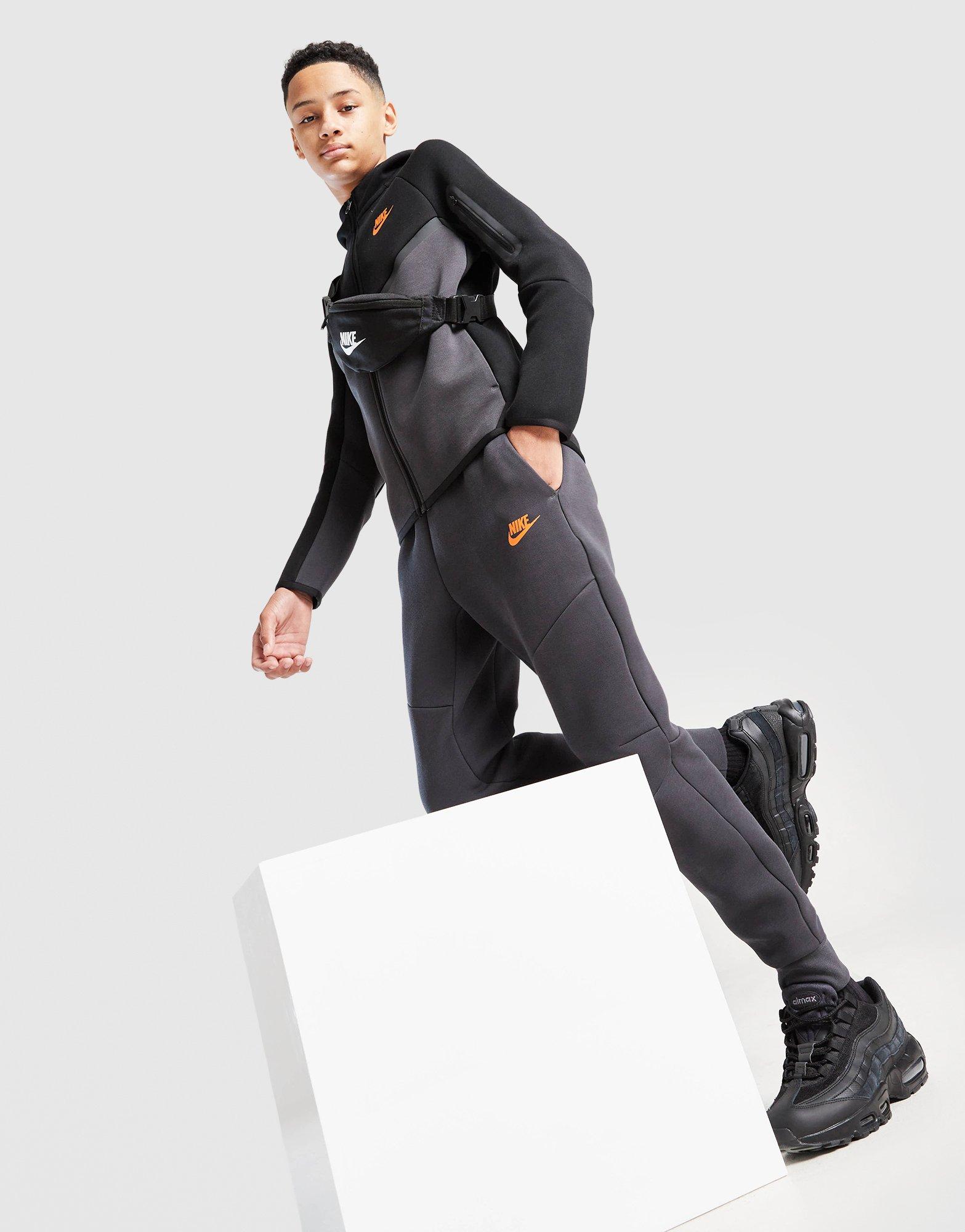 Nike's iconic fleece goes JD-exclusive with these juniors' Tech Colour Block Joggers. Lightweight, smooth and warm, these track pants are bringing the heat. A drawcord tie dials in the fit, while extra fabric between the legs lets you move with ease. Finished up with a zip pocket and a Nike Futura logo. Machine washable.