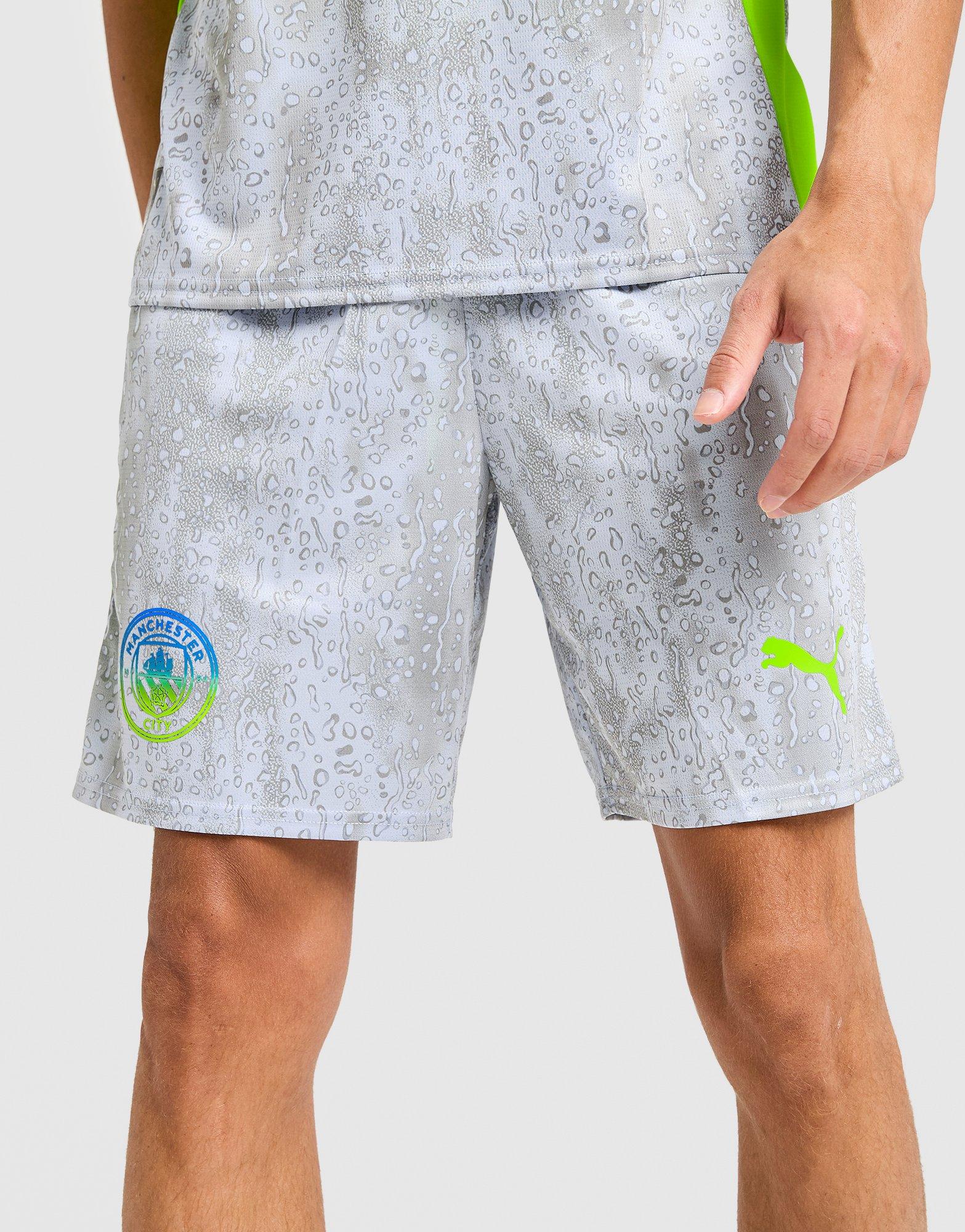 Ready to back the Cityzens? These men's Manchester City FC 2025/25 Third Shorts from PUMA are cut from a light, breathable fabric. In Cool Weather, they have a rain-inspired design. They've got an elasticated, drawcord waist to lock you in. And dryCELL tech to wick away moisture when things heat up. Signed off with a PUMA Cat logo and Manchester City crest. Machine washable.