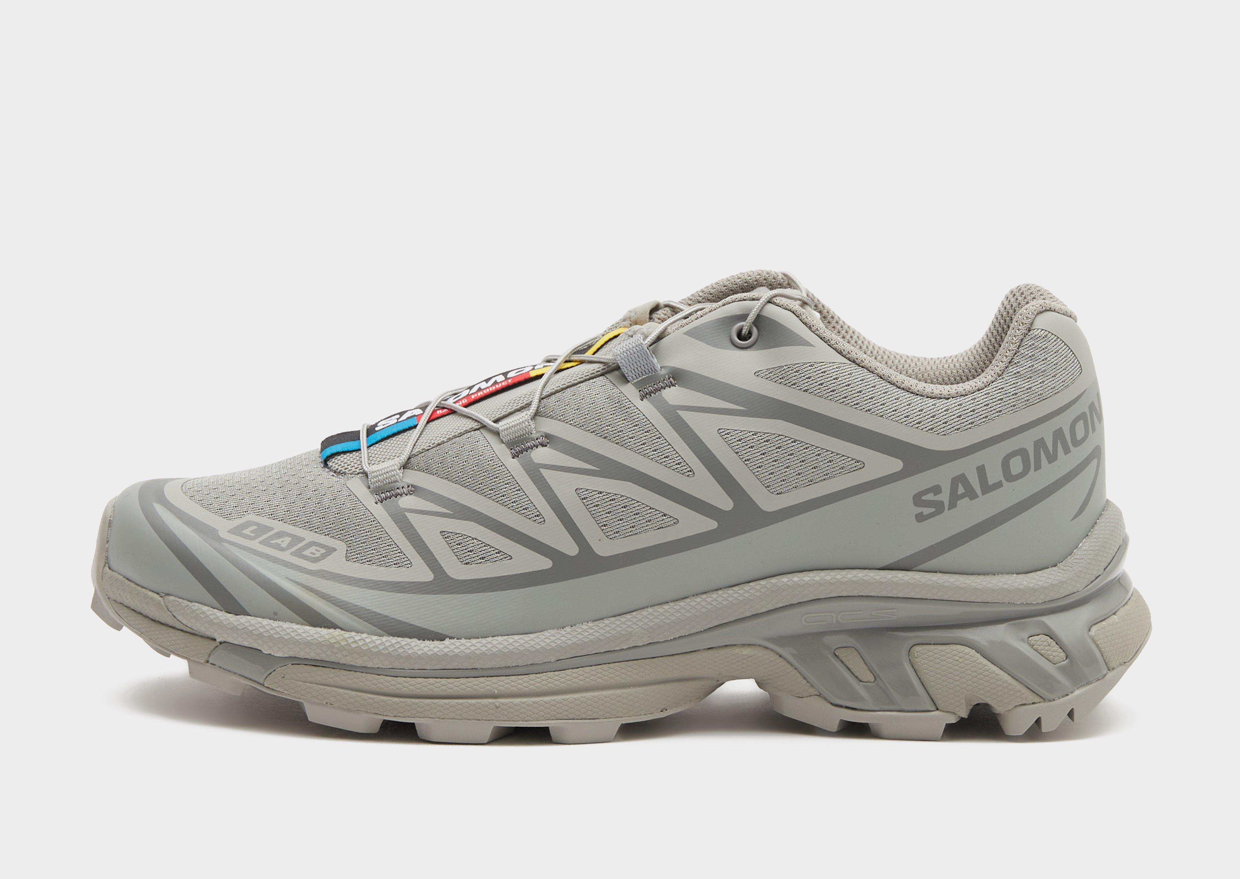 Chosen by ultra-distance athletes to conquer the trails even under rough conditions, the XT-6 first made its debut in 2013. Lightweight and streamlined, the textile upper is reinforced by a durable TPU film, this time appearing in the 'Ghost' colourway. EVA cushioning enables shock absorbency and ensures a soft landing, while the downhill chassis system provides stability across terrains. | L47444800