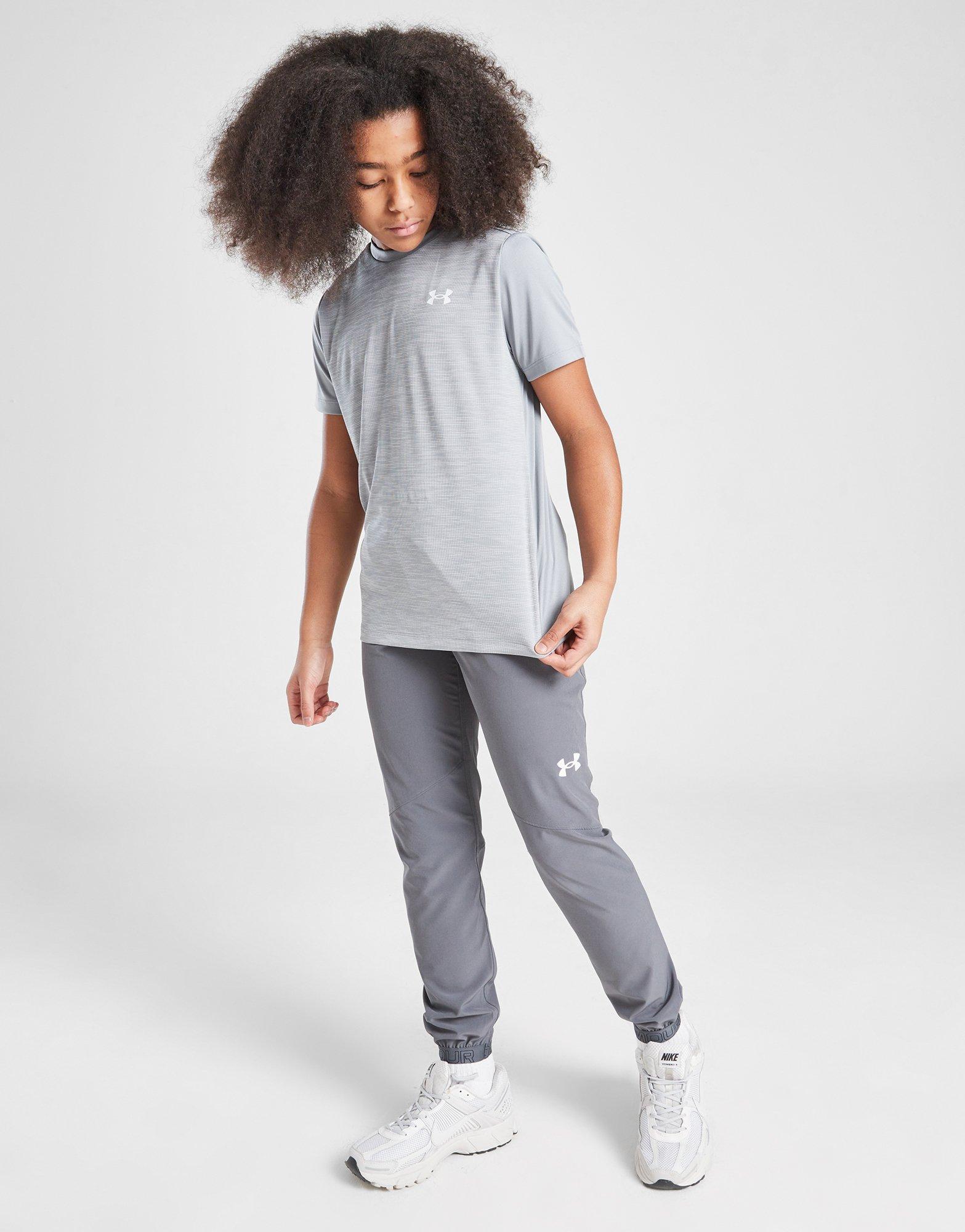 Train to the max with this juniors' UA Tech Textured T-Shirt from Under Armour. In a Steel Light Heather colourway, this JD-exclusive top has a classic crew neckline and short sleeves. The sweat-wicking and unrestricted UA Tech fabric has smooth and textured panels to the back and front. Finished off with the signature Under Armour badge on the chest and nape. Machine washable.