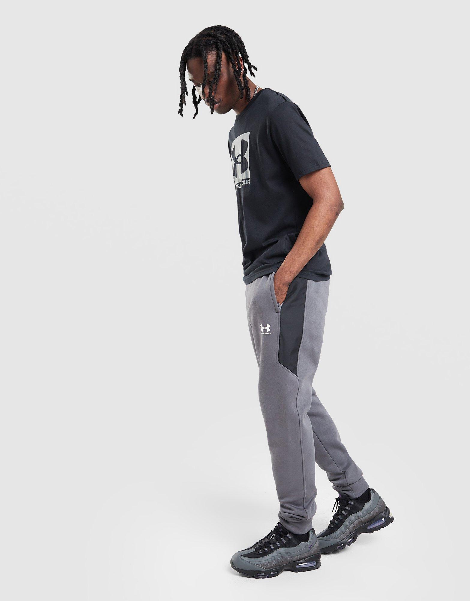 Step back from the workout in these men's Utility Fleece Joggers from Under Armour. In grey, these soft fleece joggers have an elastic waist with a drawstring, and cuffed ankles for a clean look. They've got open pockets to the sides, and smooth woven inserts to add a little texture. Finished up with signature Under Armour logos. Machine washable. | Our model is 6'0" and wears a size M.