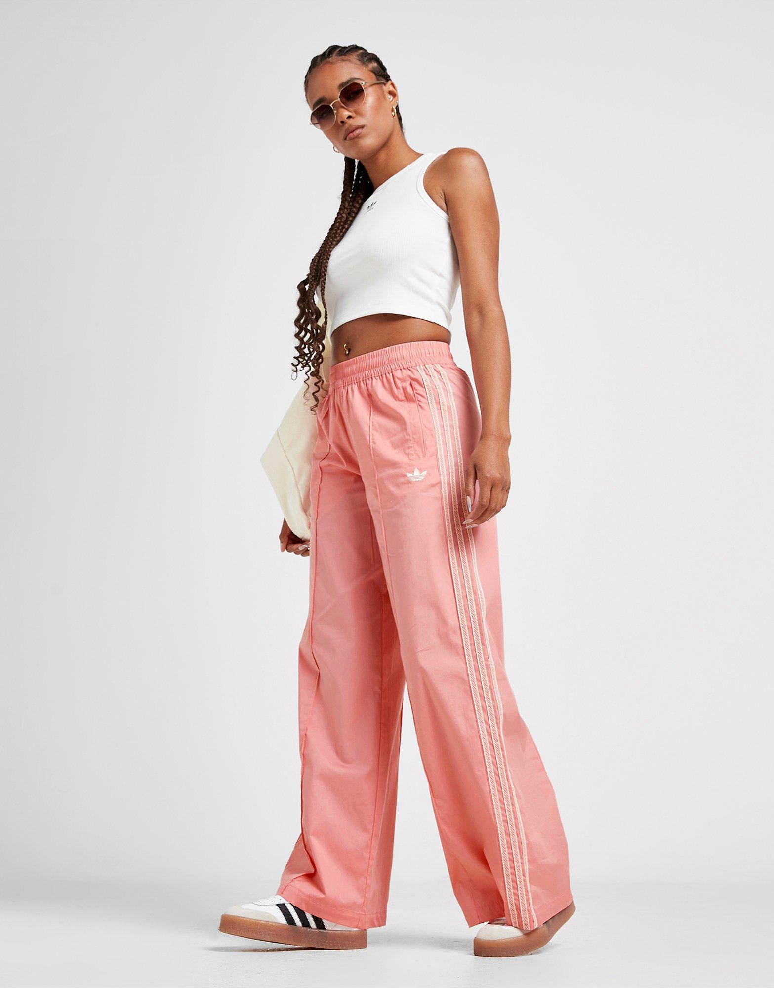 Originals. In a Semi Pink Spark colourway, these wide leg pants are cut from soft, stretchy cotton fabric for lasting comfort. They feature an elasticated waistband for a secure fit, with side pockets for storage. Finished up with the signature 3-Stripes down the sides and an embroidered Trefoil logo on the thigh. Machine washable. | KC0676