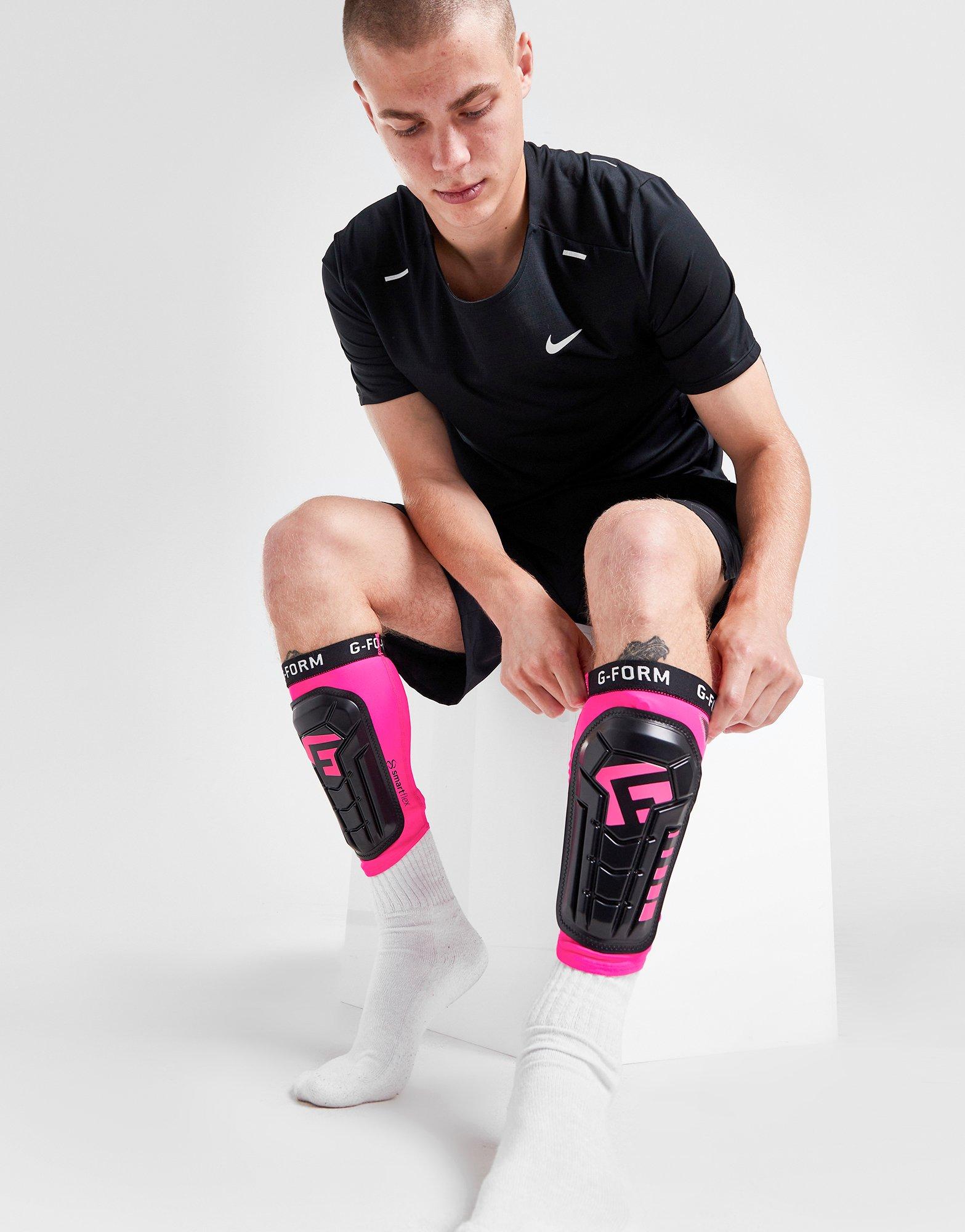 Stay injury free with these Pro-S Vento Shin Guards from G-Form. In a Pink and Black colourway, these SmartFlex pads have a fitted design for a snug fit. They're built with an integrated sleeve for premium calf compression, while moisture-wicking tech keeps you dry and fresh. With an elongated front for easy on-and-off and a hard shell for protection, they're finished up with repeated G-Form branding. Machine washable._