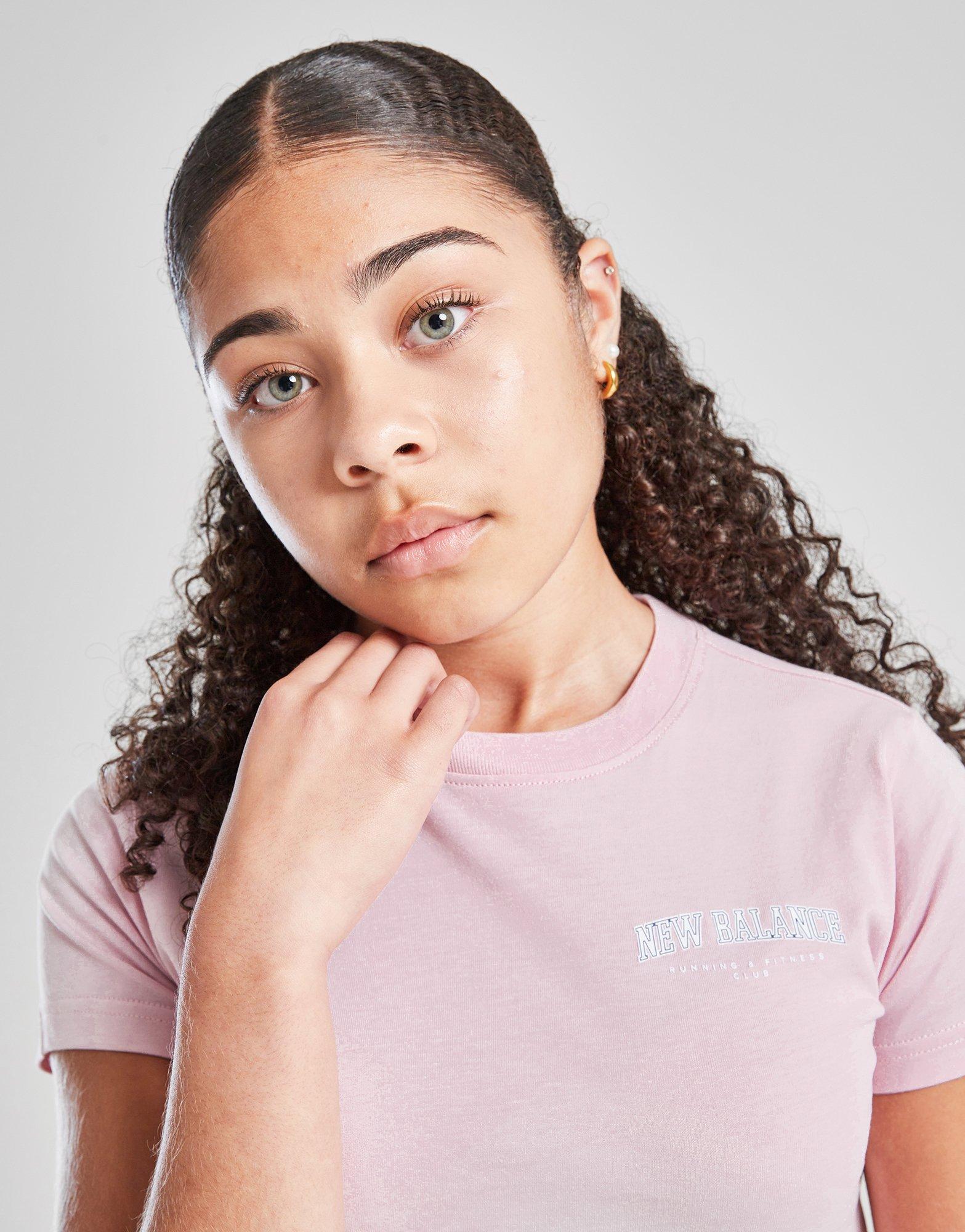 Elevate your everyday rotation with this junior girls' Arch Logo Baby T-Shirt from New Balance. In a Pink colourway, this JD-exclusive tee is cut from soft cotton fabric for lasting comfort. It features a ribbed crew neckline, short sleeves and a cropped hem for easy wear, and is signed off with New Balance branding on the chest. Machine washable.