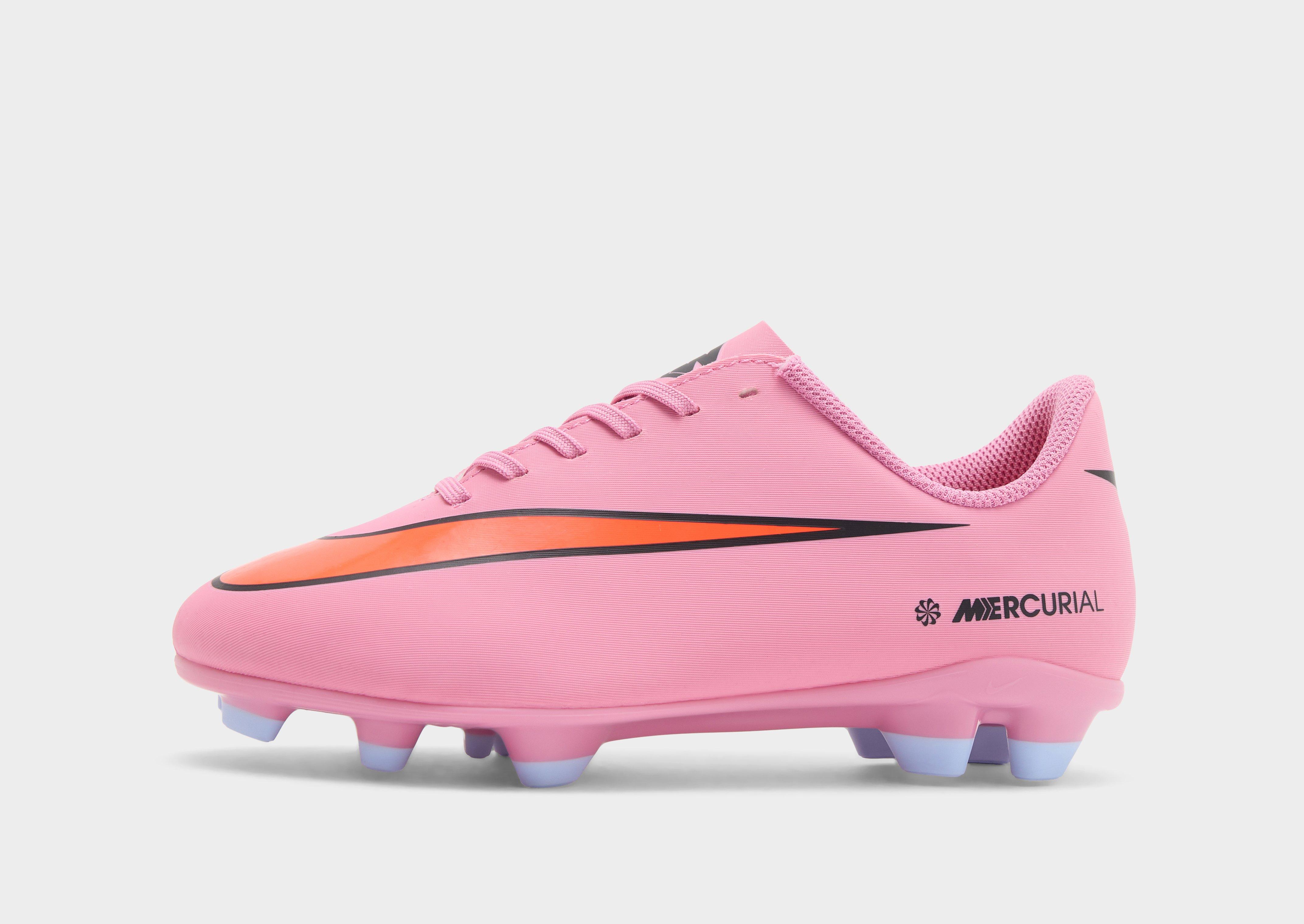 Get the little ones ready for big matches in these children's Mercurial Vapor 16 Club FG football boots from Nike. In Magic Flamingo with black and Total Crimson accents, these low-profile boots have a soft synthetic leather upper. Textured details up top help them keep control of the ball. A lace fastening feels secure, with a soft lining to wrap their foot for a snug fit. Plastic plates underfoot with tough studs deliver elite traction. Finished with signature Nike branding.