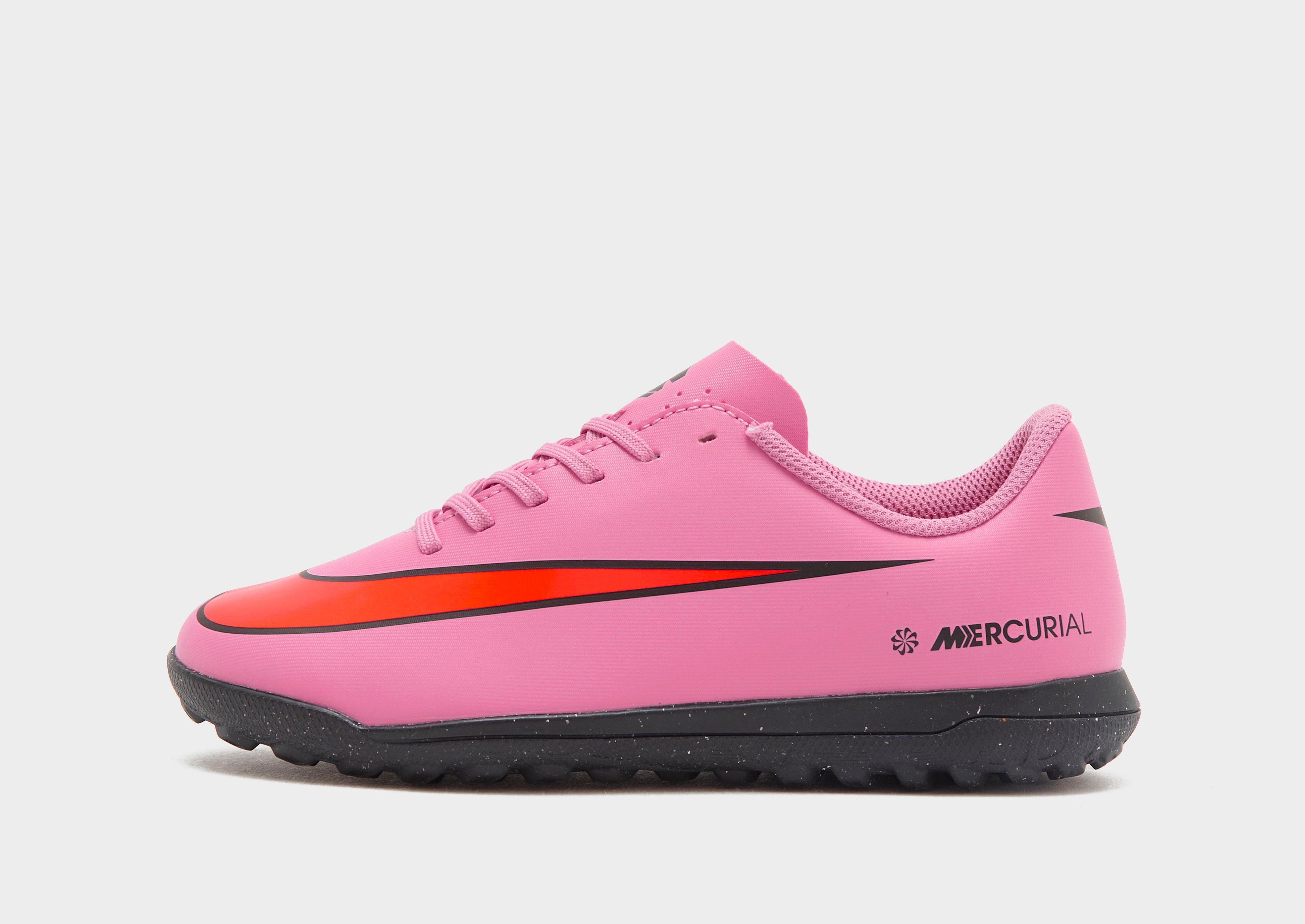 Get them match-ready in these children's Mercurial Vapor 16 Club TF football boots by Nike. Synthetic leather up top feels light, with a textured finish to help them keep control. Classic laces lock them in, while a soft, comfy lining wraps their foot for a close fit. A tough rubber outsole delivers essential traction on the turf. Magic Flamingo and Total Crimson colours look bold, with signaturen Nike branding to finish up.