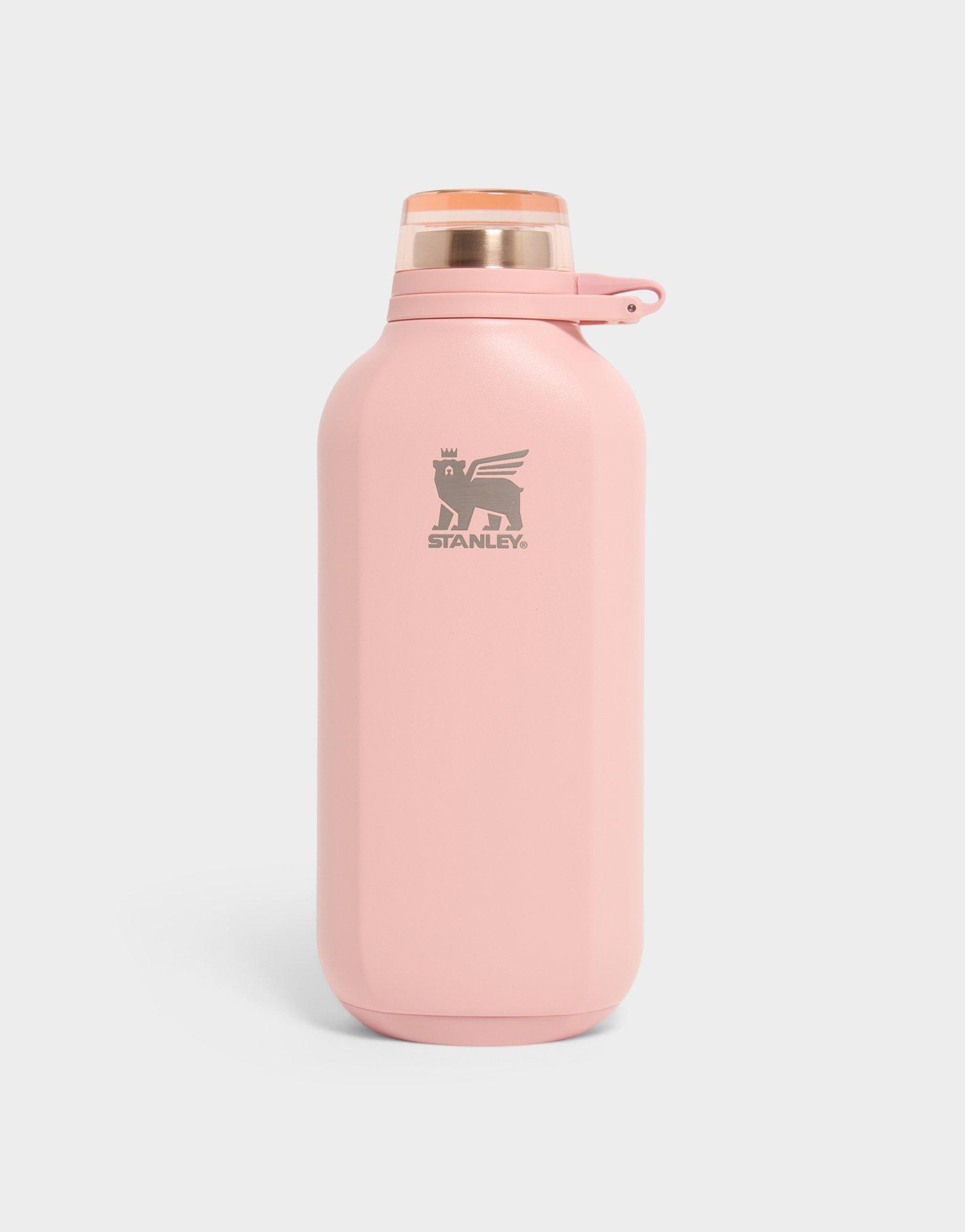 Stay hydrated when on the go. This Stanley Clutch Bottle is made from durable stainless steel, with double-wall vacuum insulation that keeps drinks cold for hours. Made for busy lifestyles, it fits into your bag and has a leather wrist strap for when you need to go hands-free. The twist-off cap is secure and leakproof. Diswasher safe, lands in Peach Rose and is finished with signature branding. | Weight: 430g. Dimensions: 88 x 58 x 215 mm_