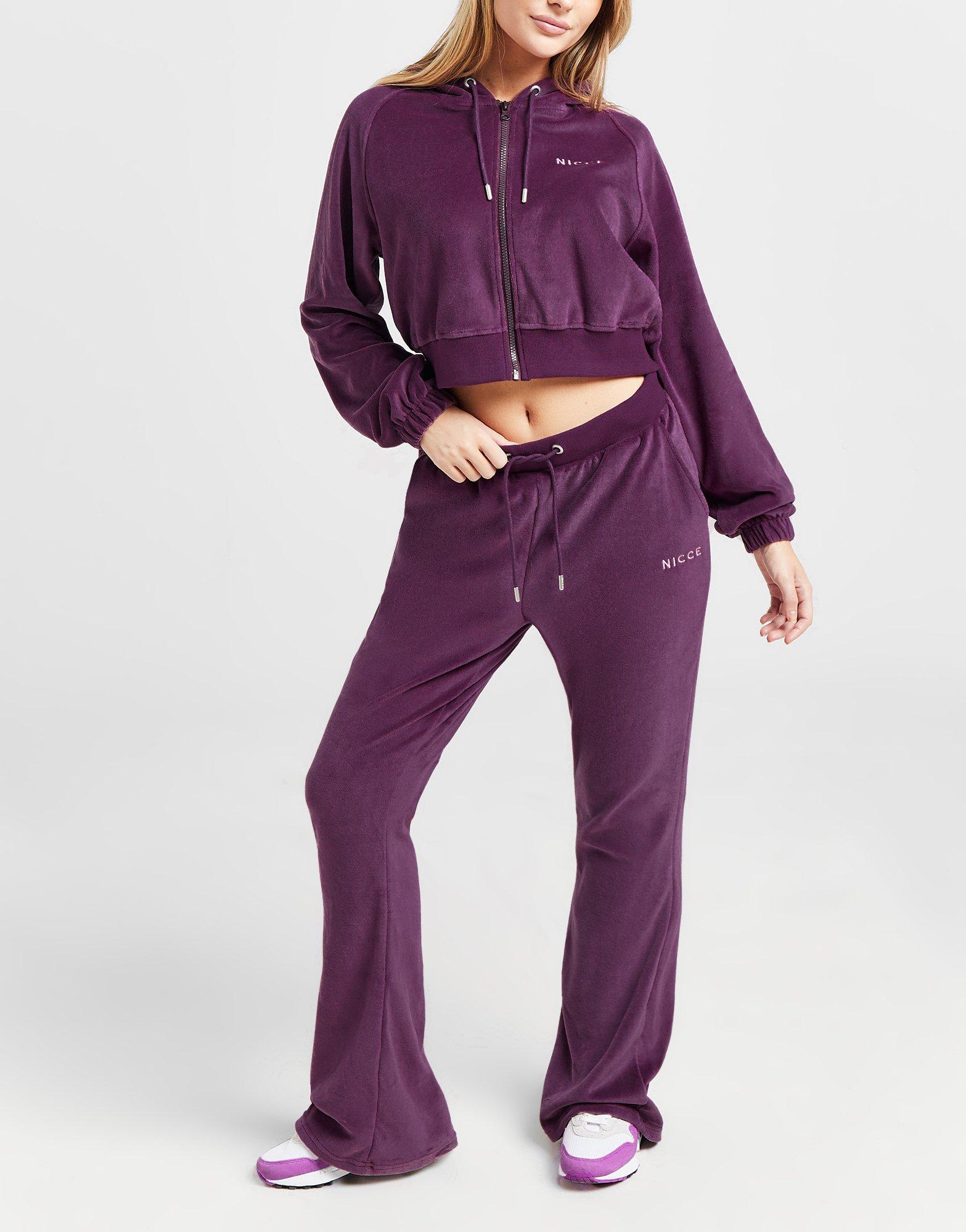 Give you laidback looks a refresh with these women's Velour Flare Track Pants by Nicce. Exclusive to JD, these relaxed fit track pants are cut from a soft and stretchy velour fabric to ensure complete comfort. They feature an elastic drawcord waistband for a snug, supportive feel, and have side pockets so you can quickly store your essentials. With flared lrgs for a chilled vibe, they're signed off with Nicce branding to the thigh. Machine washable. | Our model is 5'7" and wears a size small.