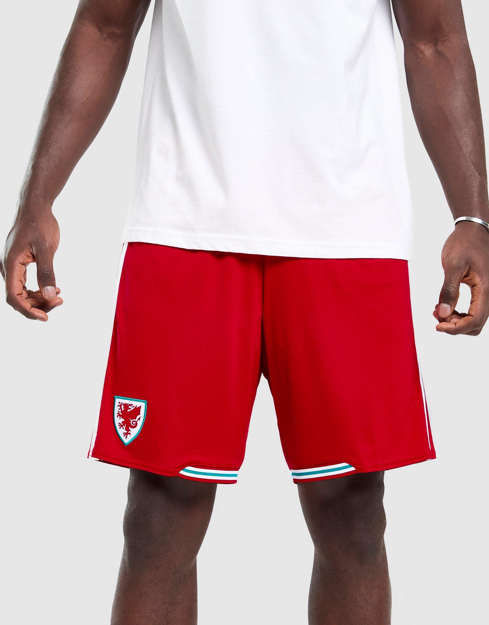 Back the Dragons on the pitch. These men's Wales 2026 Home Shorts from adidas are cut from light, airy fabric. They've got a tonal graphic inspired by Cymru. An elasticated, drawcord waist to adjust the fit. And CLIMACOOL tech to remove sweat. In Better Scarlet, they're signed off with 3-Stripes, a Performance logo and the Wales crest. Machine washable. | JL6926