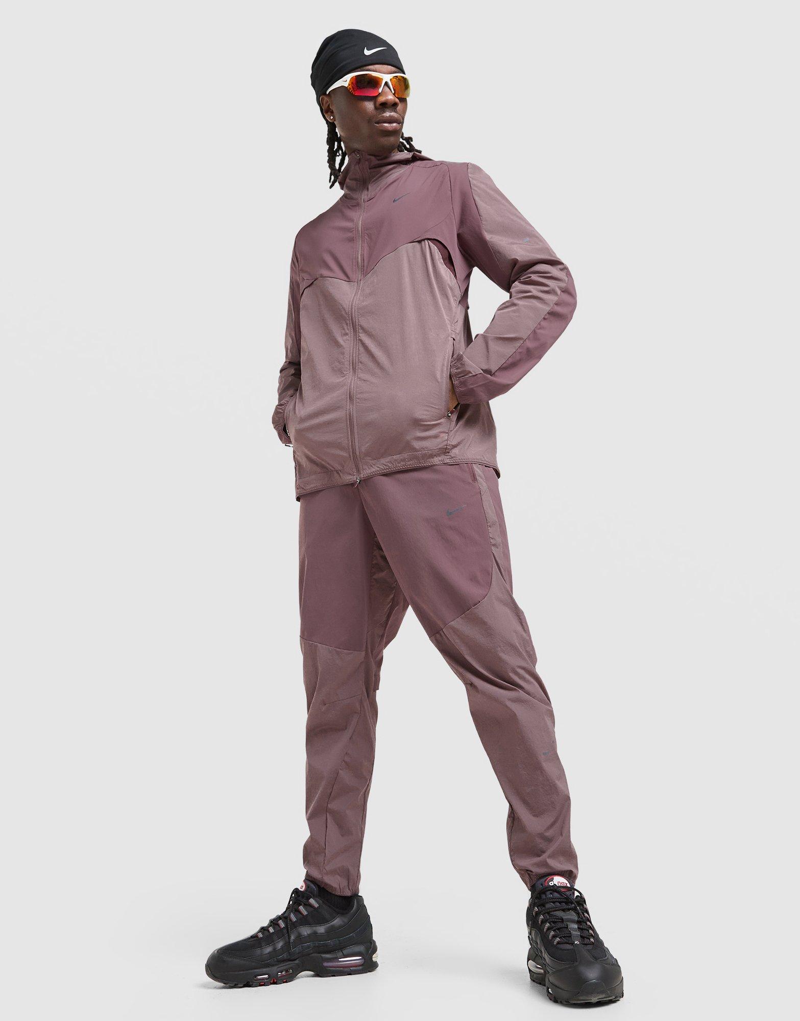 When the weather takes a turn, these mens Stride Novelty Track Pants from Nike are a running staple. Light and airy, theyve got a water-repellent finish to keep things dry. An elasticated, drawcord waist, zippered cuffs and tapered legs offer a clean fit. Mesh vents keep things cool, and zip pockets provide space for your stuff. Finished with reflective details and Swoosh branding. Machine washable. | Our model is 60 and wears a size M.