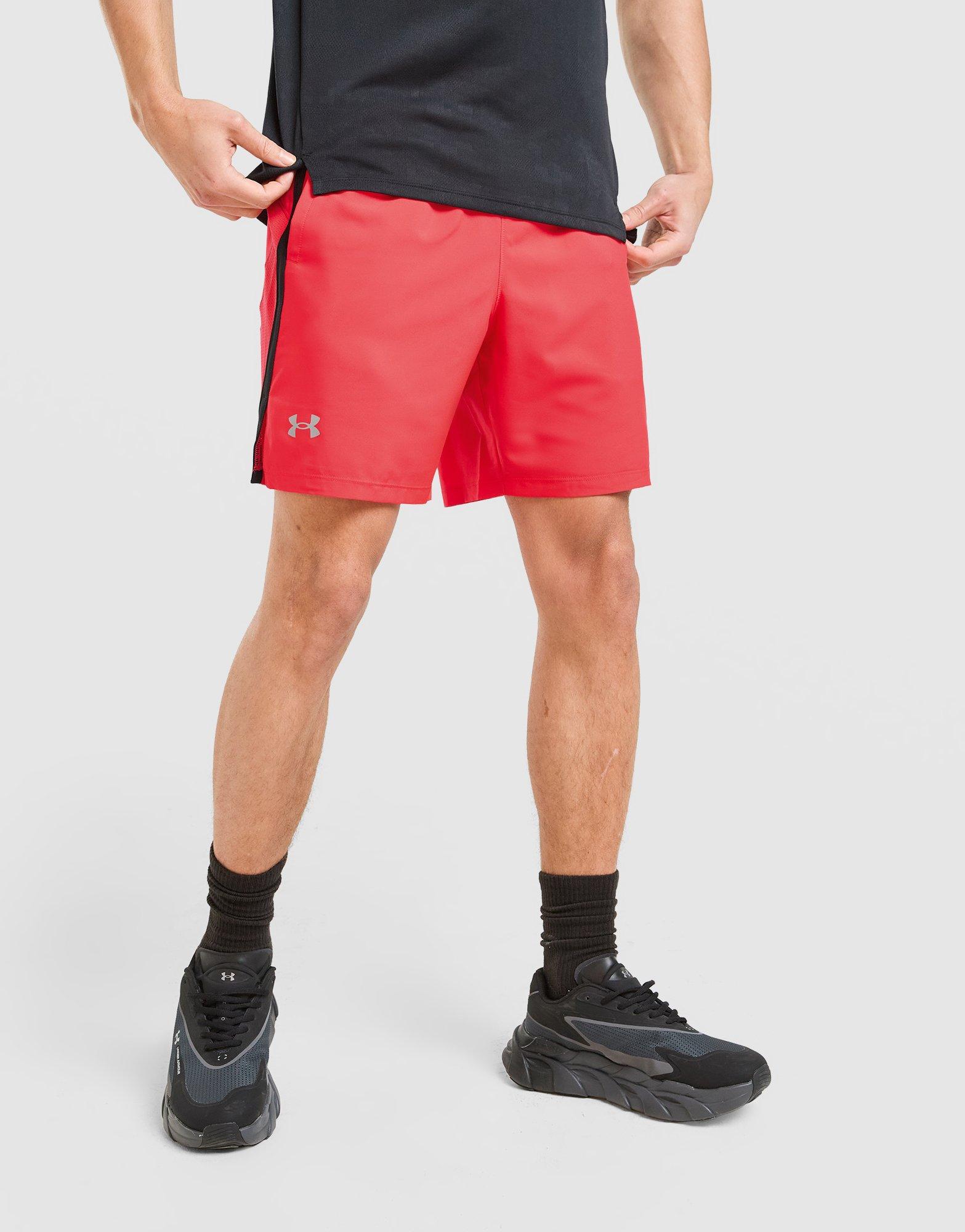 Make daily miles stand out with these men's Launch 7" Shorts from Under Armour. In a bold Racer Red colour, these running shorts are cut from light and durable woven fabric that removes sweat and dries quickly. Mesh panels keep air flowing and the soft knit waistband has a drawcord tie to secure the fit. Finished off a phone sleeve inside the right pocket and reflective Under Armour branding. Machine washable. | Our model is 6'0.5" and wears a size M.