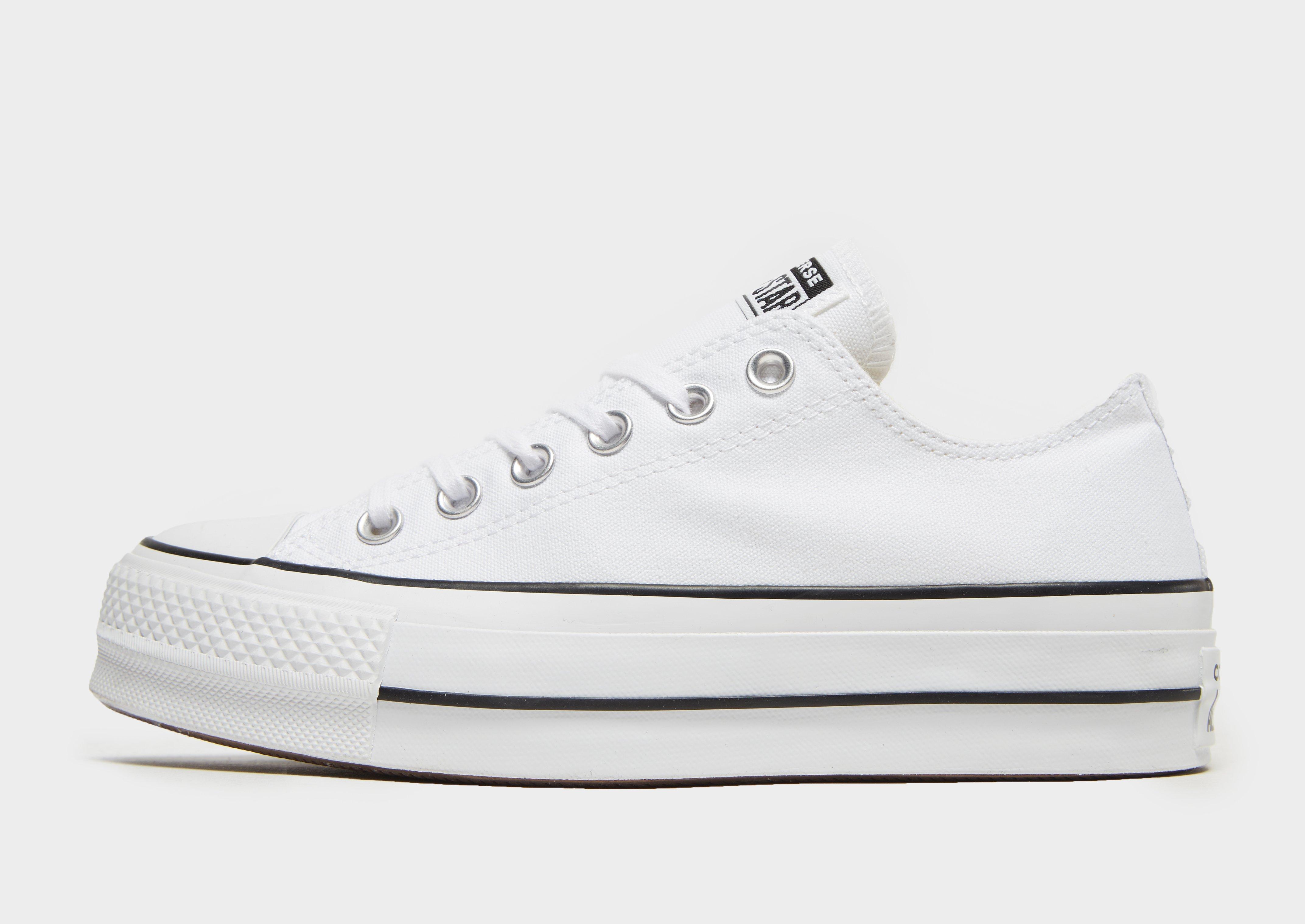 Take your sneaker game up a level with these women's All Star Lift Ox Platform trainers from Converse. Built with a durable canvas upper for a classic look, they feature a tonal lace up fastening, silver-tone eyelets and the signature rubber toe cap. With a switched up look, these sneakers have a statement, platform midsole with a contrasting stripe and grippy rubber tread for traction. Finished with All Star branding to the tongue and a license plate to the heel.