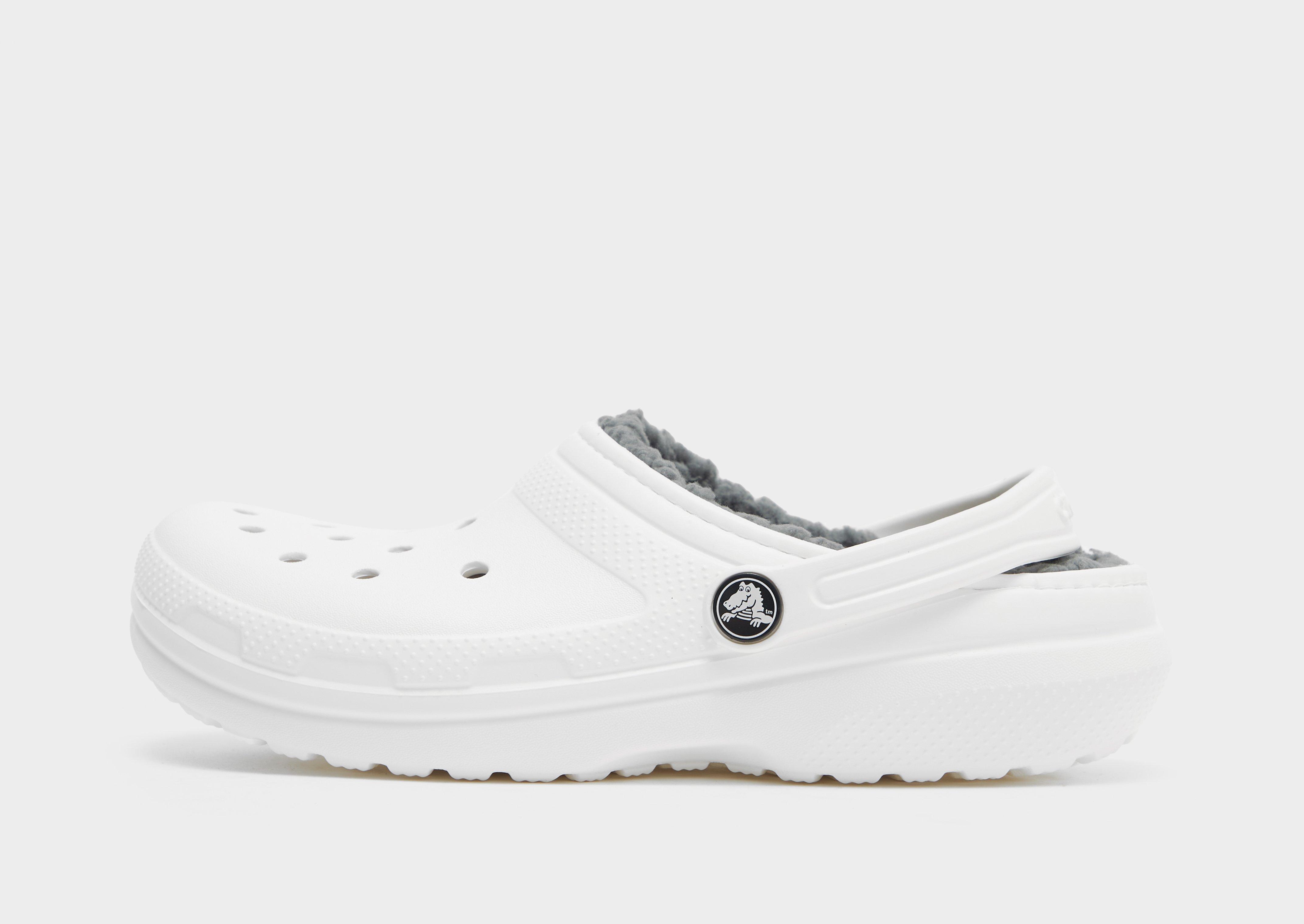 A Crocs classic gets a cosy upgrade with these juniors' Classic Clog Lined sandals from Crocs. In a fresh White colourway, these slip-ons are made with from the iconic Croslite material for durable, waterproof comfort. They have a soft fleece lining for added warmth, as well as breathable vent ports for airflow. Sitting on a plush foam footbed, these clogs have an adjustable pivoted heel strap for a custom fit, with a textured rubber outsole to keep you gripped. Finished with signature Crocs branding throughout. | Please note: Crocs fit wide. If you have narrow feet, we recommend that you size down. Crocs come with the US size embossed to the sole.