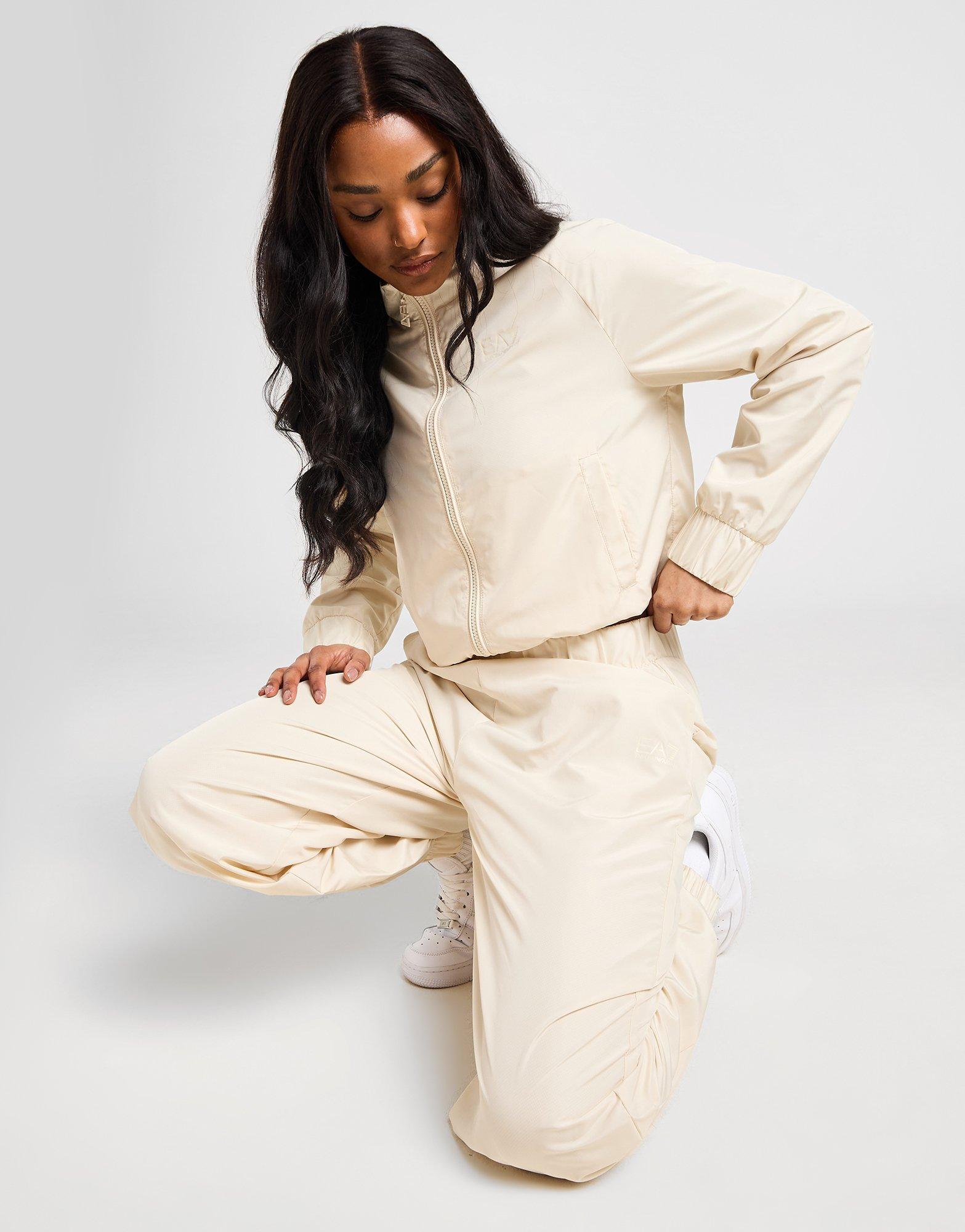 Suit up for the streets in this women's Woven Jacket Tracksuit from EA7 Emporio Armani. In a Cream and Black colourway, this suit is cut from smooth woven fabric for breathable comfort. It features a full-zip fastening and a stand-up collar for coverage, with elasticated trims to hold the shape. The matching joggers have an elasticated, drawcord waistband and cuffed ankles for a secure fit, with zippered and open hand pockets for secure storage. Finished off with EA7 Emporio Armani branding to the chest and thigh. Machine washable. | Our model is 5'7" and wears a size S.
