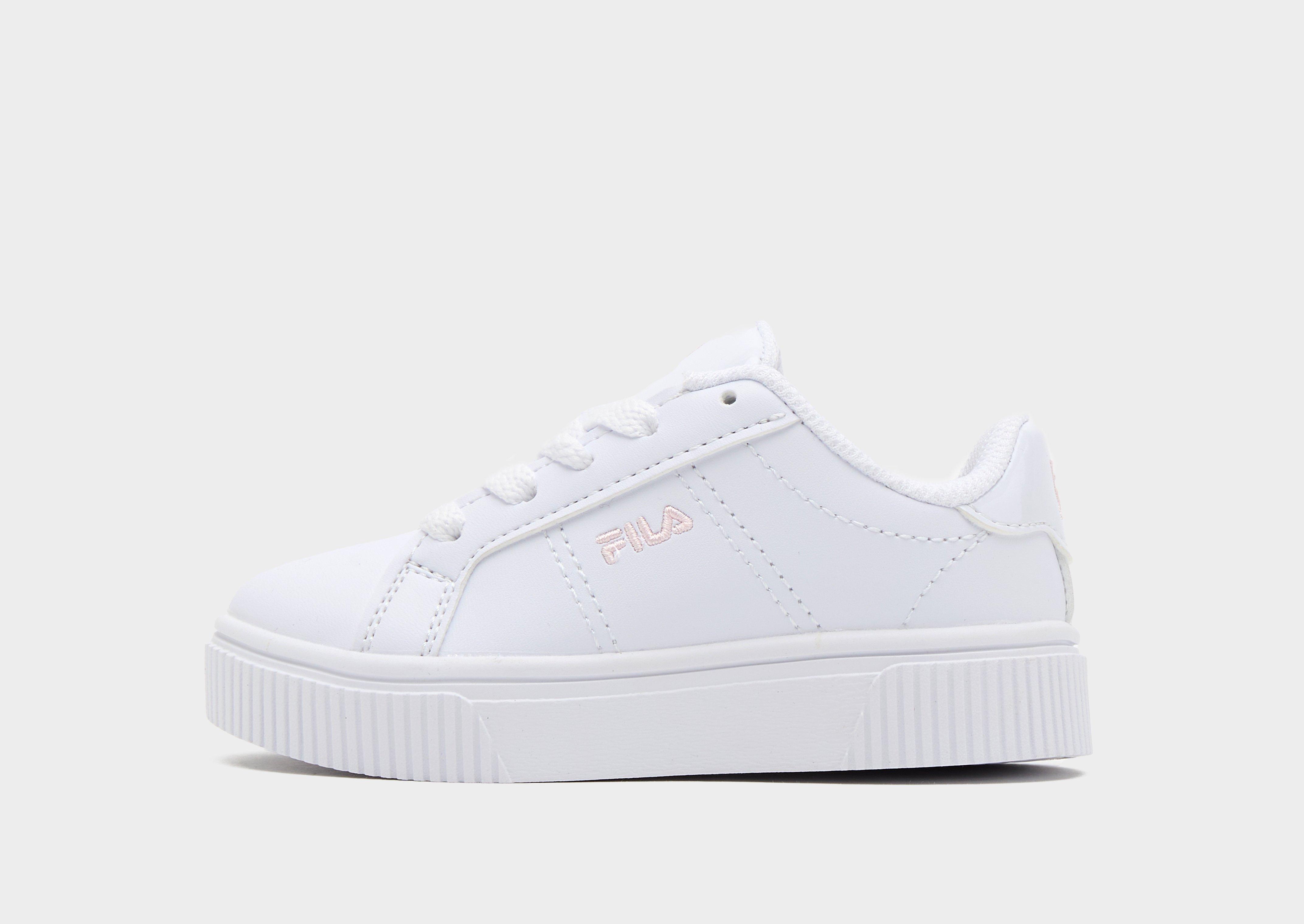 Step them out in a JD-exclusive with these infants' Panache trainers from Fila. In a White colourway, these mini kicks have tonal stitching to the synthetic leather upper. They feature a simple lace fastening and a textile lining for a comfy fit. Underfoot, the chunky midsole feels lightweight and springy, while the rubber outsole adds essential grip. Finished with Pink Fila branding.