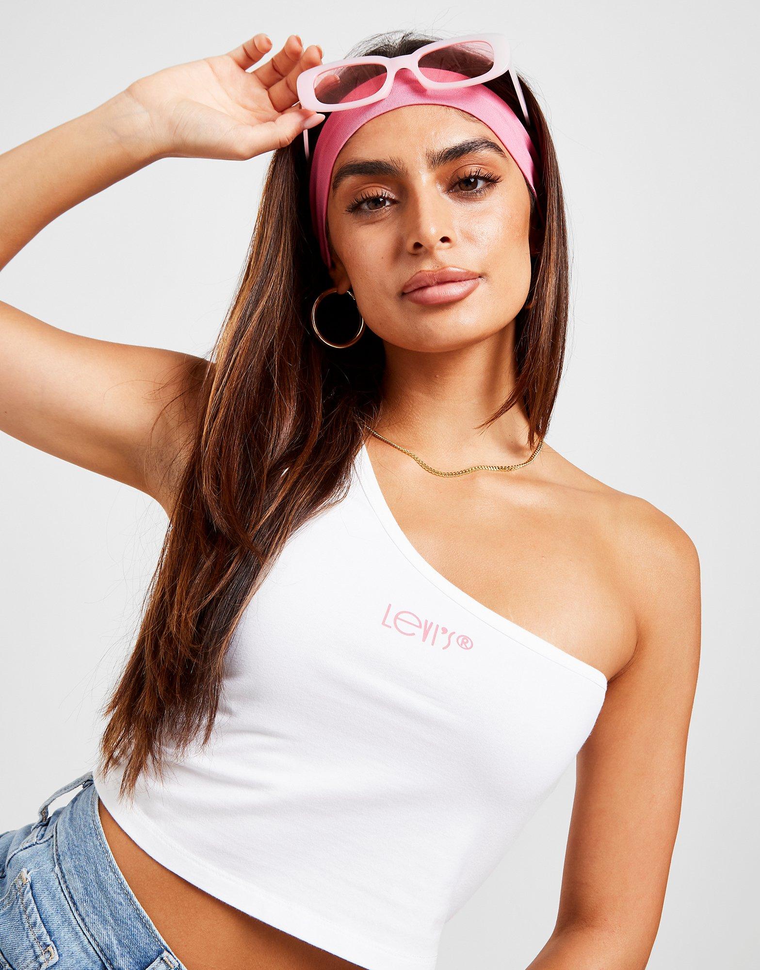 Elevate your Summer staples with this women's One Shoulder Tank Top from Levi's. Coming in a fresh white colourway, this top is made with soft, stretchy cotton for essential comfort. It features an asymmetrical cut with a one-shoulder strap design, and a cropped hem for a laidback vibe. Finished up with Levi's branding at the chest, and the signature Red Tab stitched to the side seam. Machine washable. | Our model is 5'7" and wears a size small.
