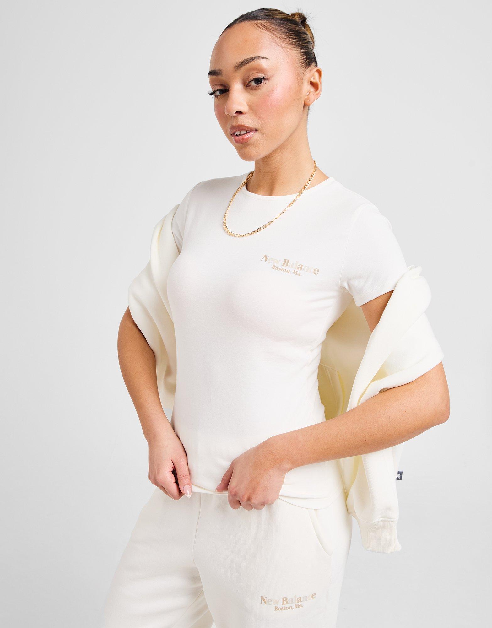 Give your weekend staples a switch up with this women's Tones Slim T-Shirt from New Balance. Landing in Off White, this JD-exlcusive tee has a classic crew neckline, short sleeves and a fitted shape through the body. It's made from soft and slightly stretchy cotton for a snug, comfy wear. Finished off with multicoloured New Balance wordmark branding to the chest and a woven label to the side. Machine washable. | Our model is 5'8" and wears a size S.