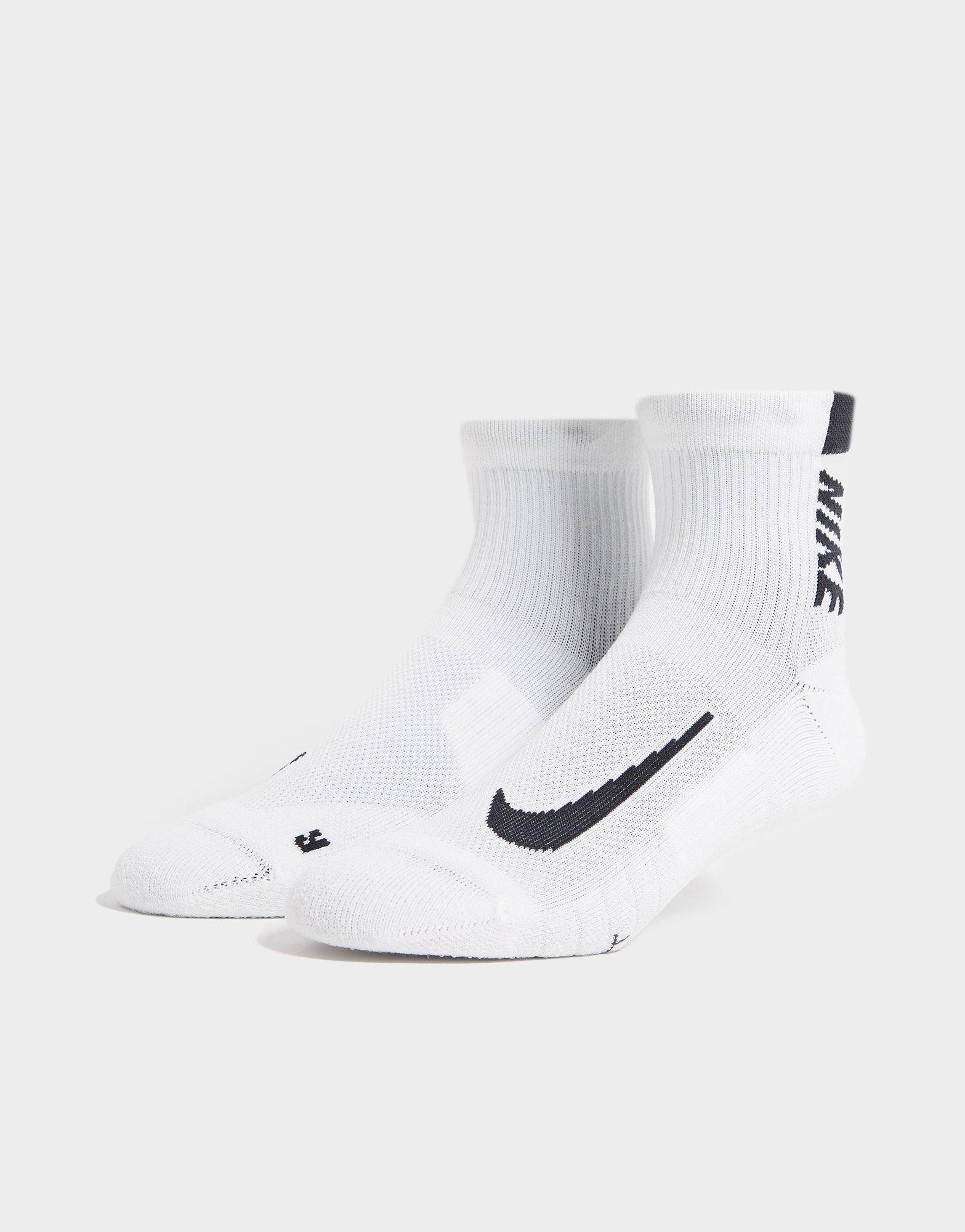 Whatever the distance, keep comfy with these Mulitplier Running Ankle 2 Pack Socks from Nike. In a White colourway, these running socks are made from stretchy fabric with sweat-wicking tech for cool comfort. They feature an arch band for midfoot support and a ribbed cuff. Finished with Nike branding and the iconic Swoosh logo. Machine washable.