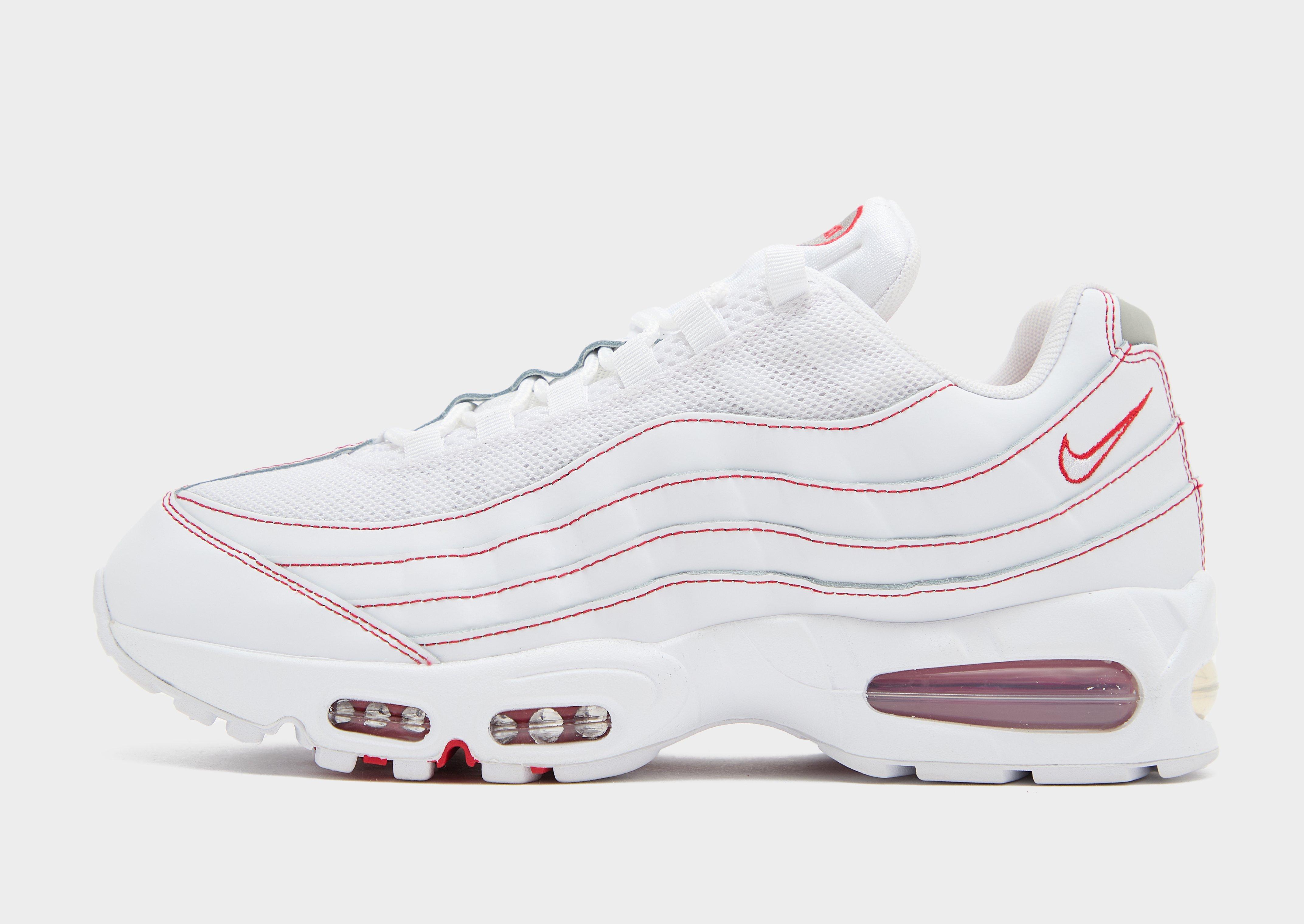 Step out in a classic with these men's Air Max 95 sneakers from Nike. In a White, University Red and Wolf Grey colourway, these sneaks are cut from breathable mesh with leather and synthetic overlays. With design lines inspired by human anatomy, they feature a lace fastening to lock you in, with a padded collar for support. Underfoot, they sit on a soft foam midsole with a Nike Air unit in the heel for a smooth ride, while a grippy rubber outsole delivers firm traction. Signed off with signature Swoosh and Air Max branding.