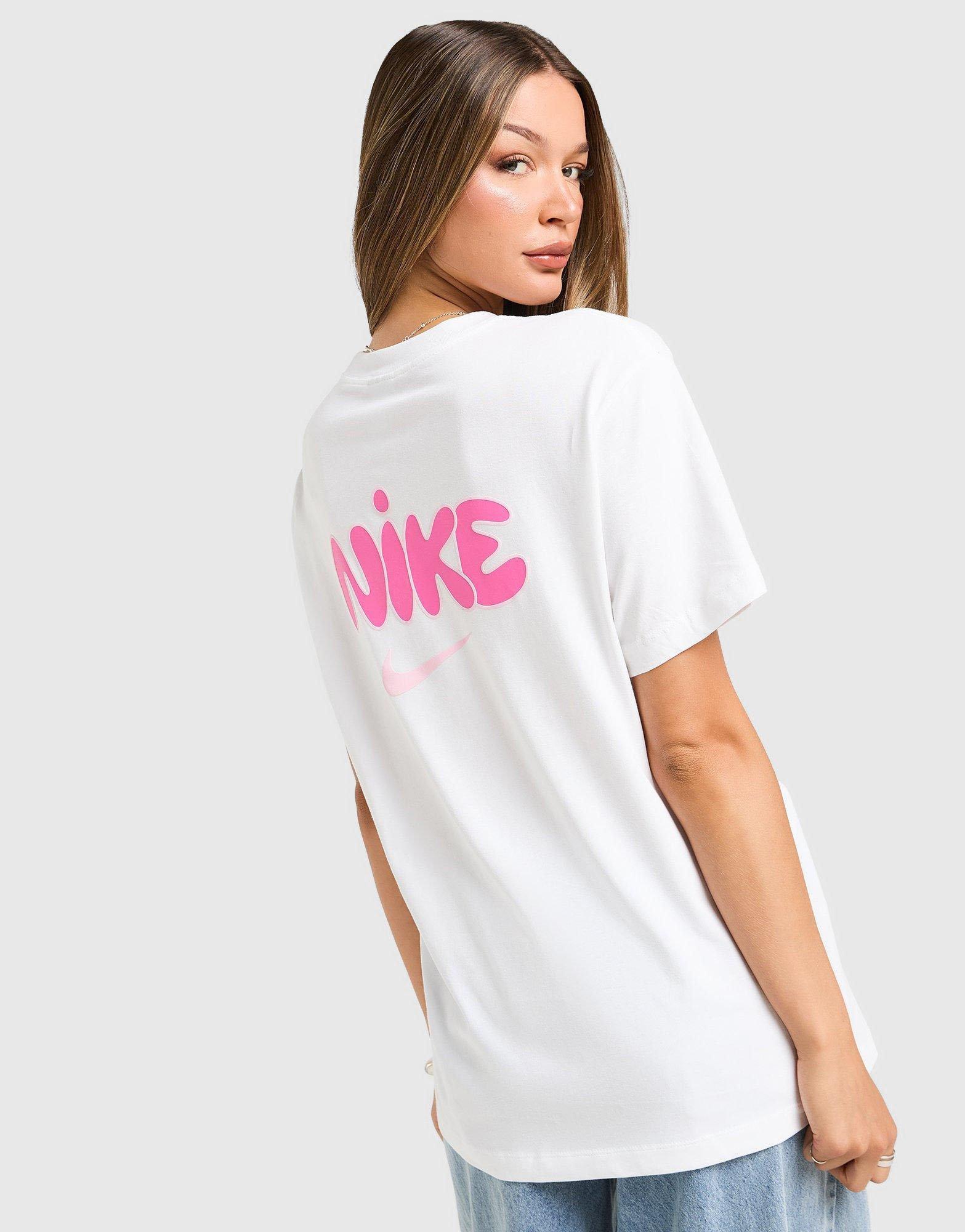 Big, bold and bubbly. This women's Bubble Graphic Boyfriend T-Shirt from Nike's giving serious summer vibes. In white, this JD-exclusive tee is cut from soft, midweight cotton fabric. Dropped shoulders for a roomy feel. And Pink Foam Nike bubble writing to the chest and back to sign off. Machine washable. |Our model is 5'10" and wears a size S.