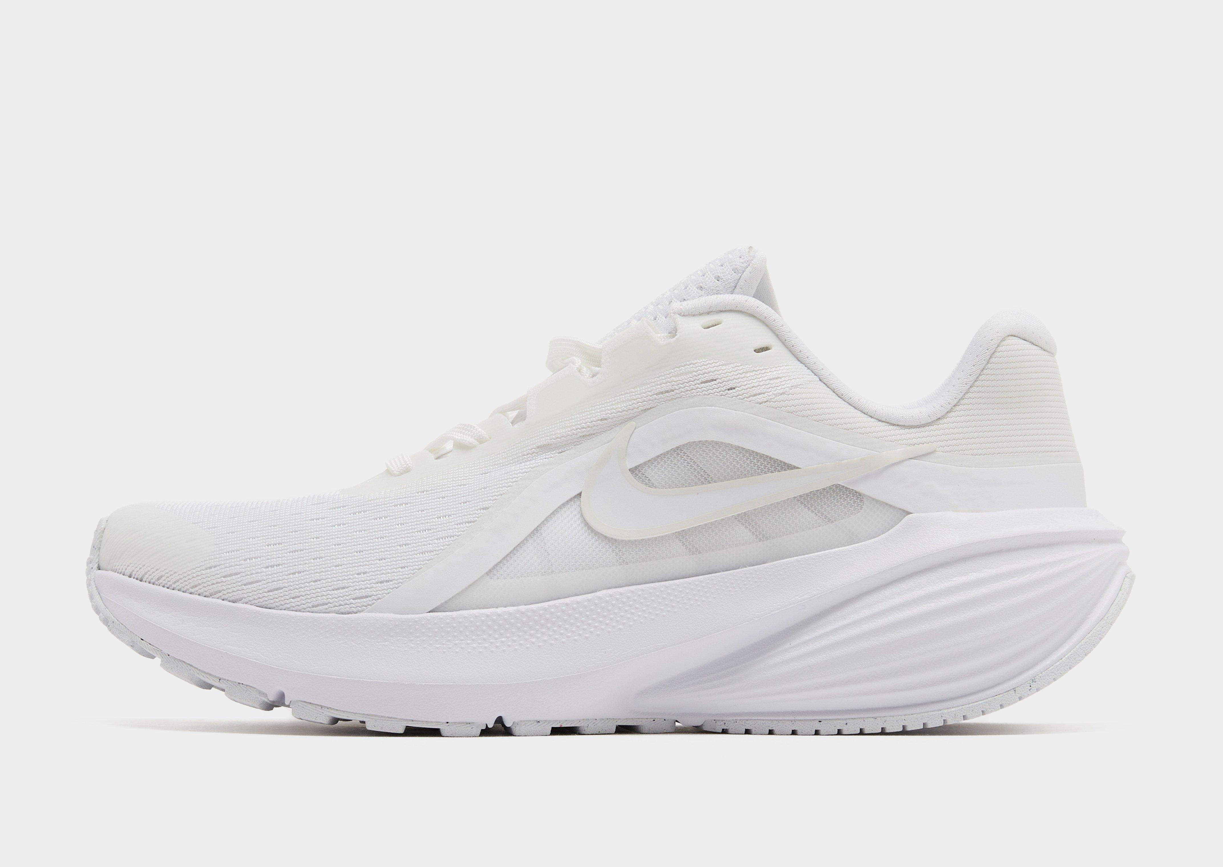 Pick up the pace with these women's Downshifter 14 trainers from Nike. In crisp white, these running shoes have an engineered mesh upper with synthetic details for stability and support. They sit on a thick foam midsole to cushion your step, with a rubber sole for grip. With a lace fastening to lock you in, they're finished up with signature Swoosh branding.