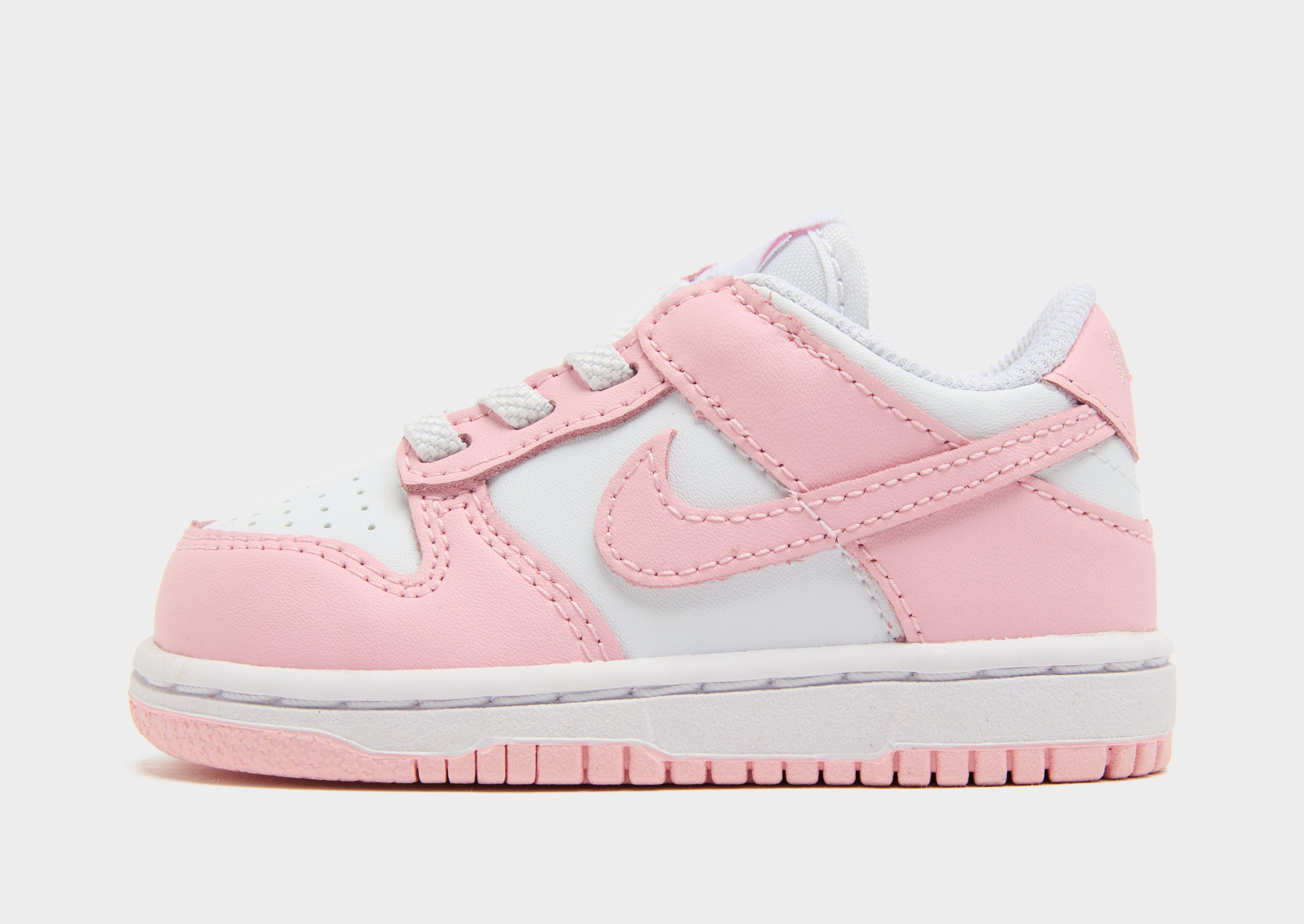 Upgrade your little one's crep collection with these infants' Dunk Low trainers from Nike. In a Medium Soft Pink and White colour block, these court-inspired creps have a real and synthetic leather upper for lasting wear. They have elastic laces for easy on-off, and snug padding around the collar with cushioning underfoot. With a grippy rubber outsole for all-day traction, they're finished with signature Nike branding throughout.